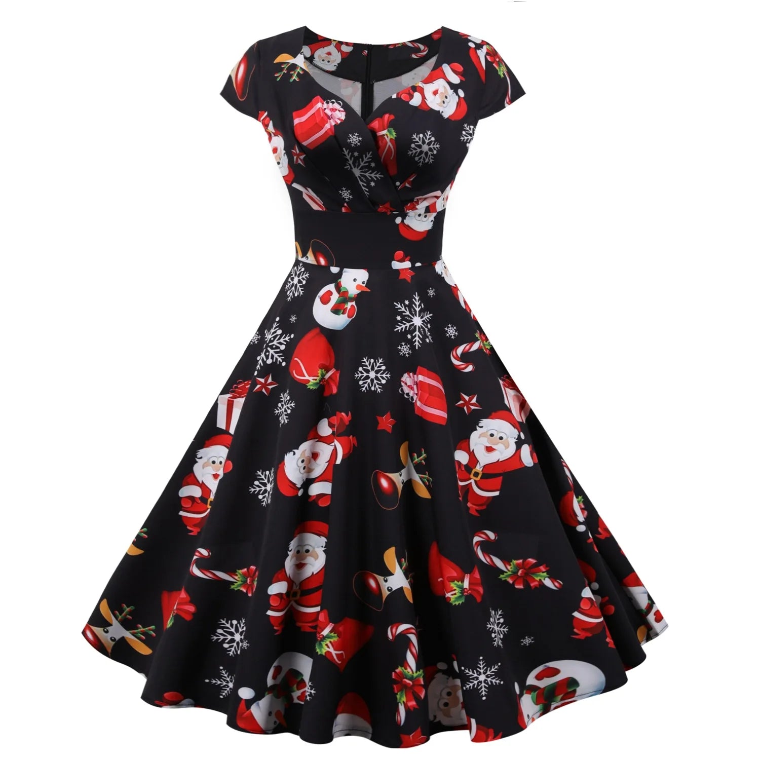 2025 Christmas Festival Dress Up Party Dresses Women Fashion Print Folds V-neck A-line Dress Lady Vintage Commuting Vestidos New
