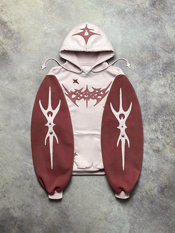 90s Contrast Color Lettering Oversized Long Sleeve Hoodie