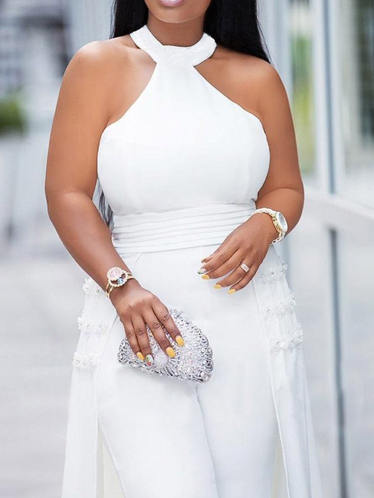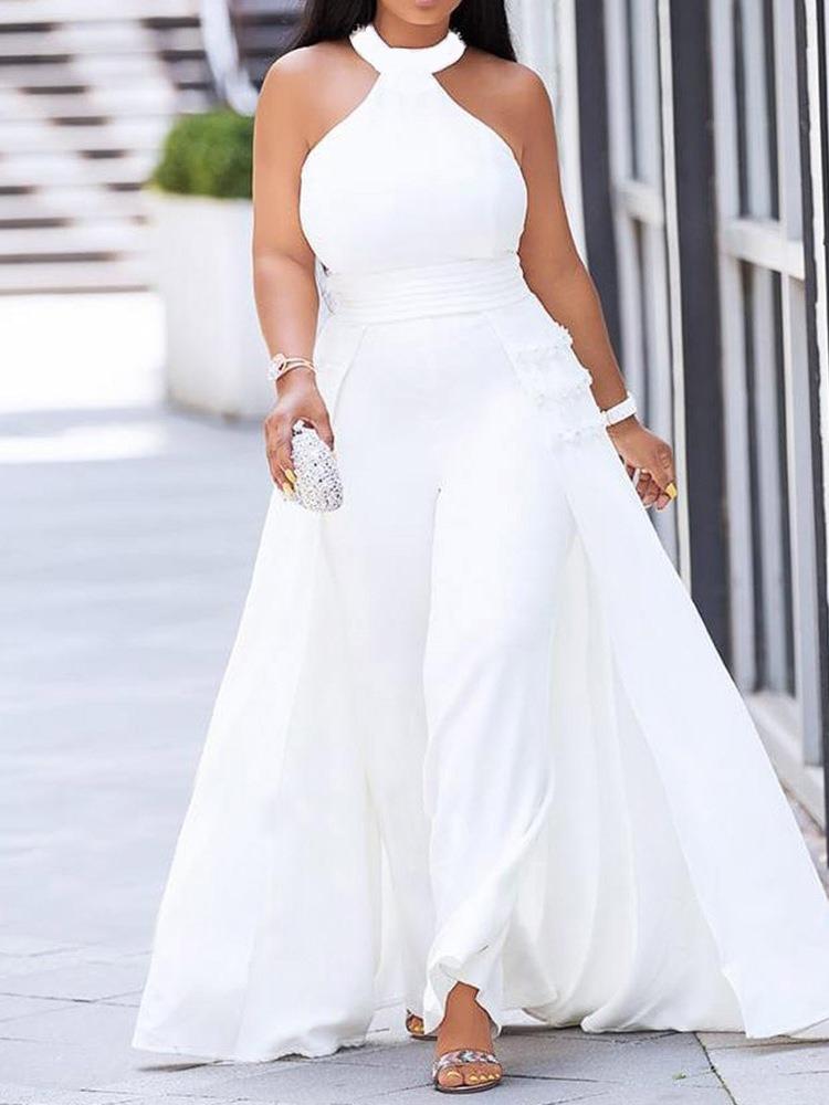 African Fashion Western Full Length Patchwork Plain Slim Jumpsuit for Women