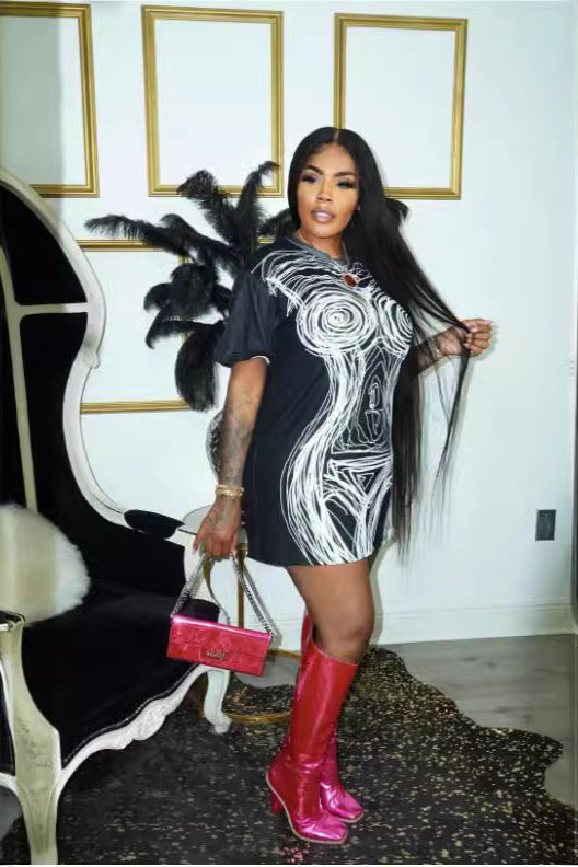 Artistic Line Print T-Shirt Mini Dress