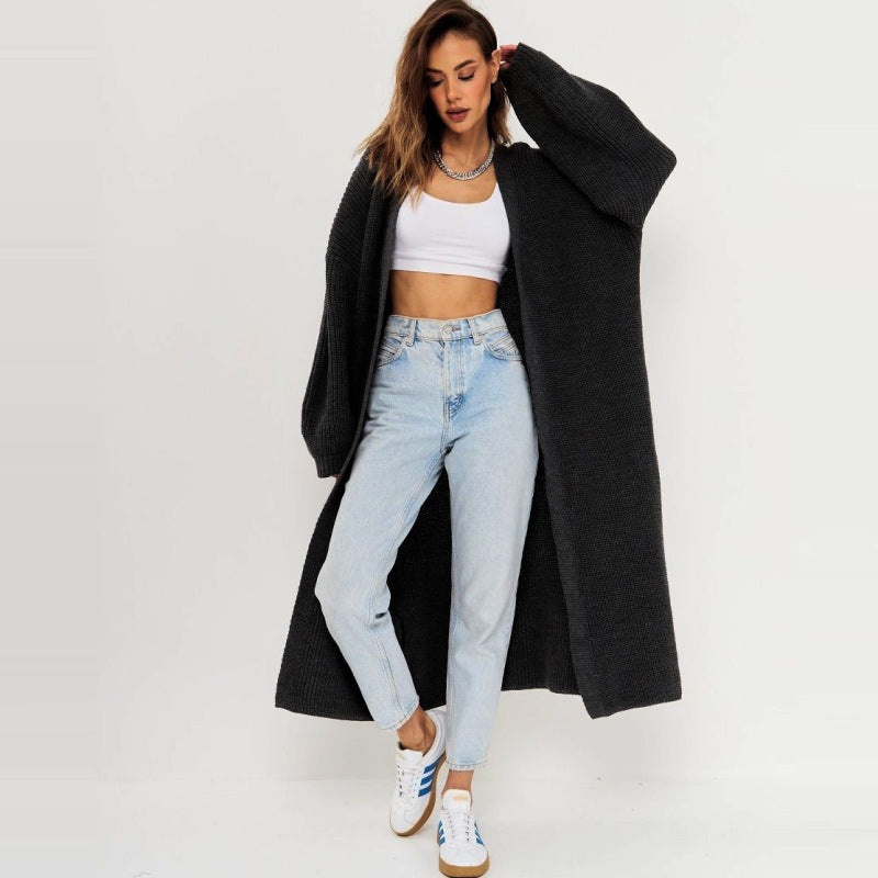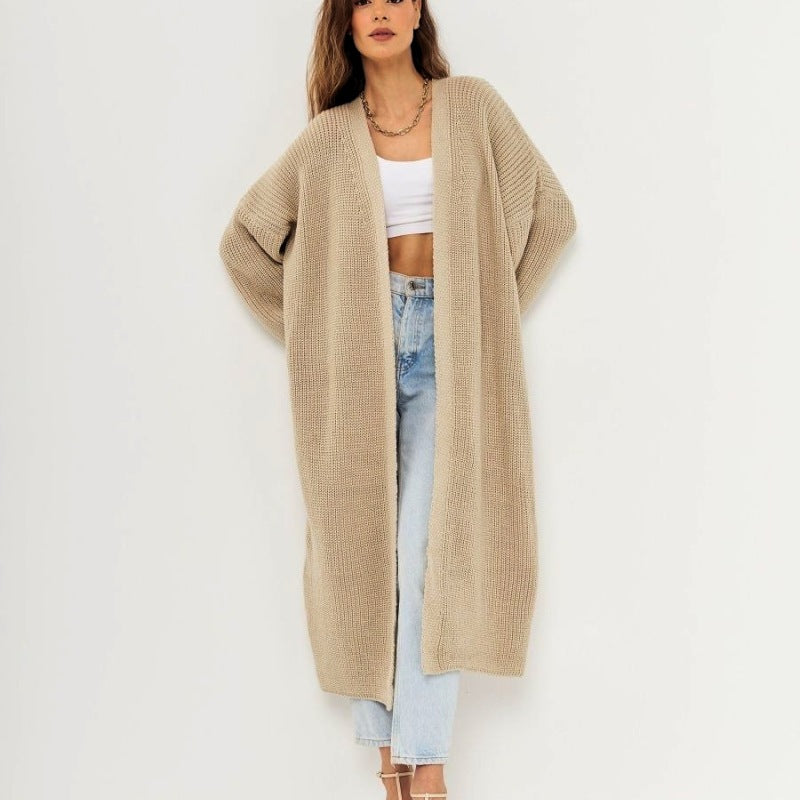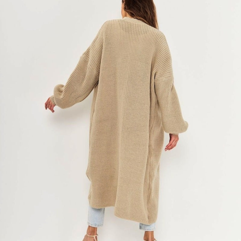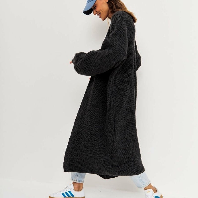 Suéter de punto largo informal holgado para mujer, abrigo de otoño e invierno