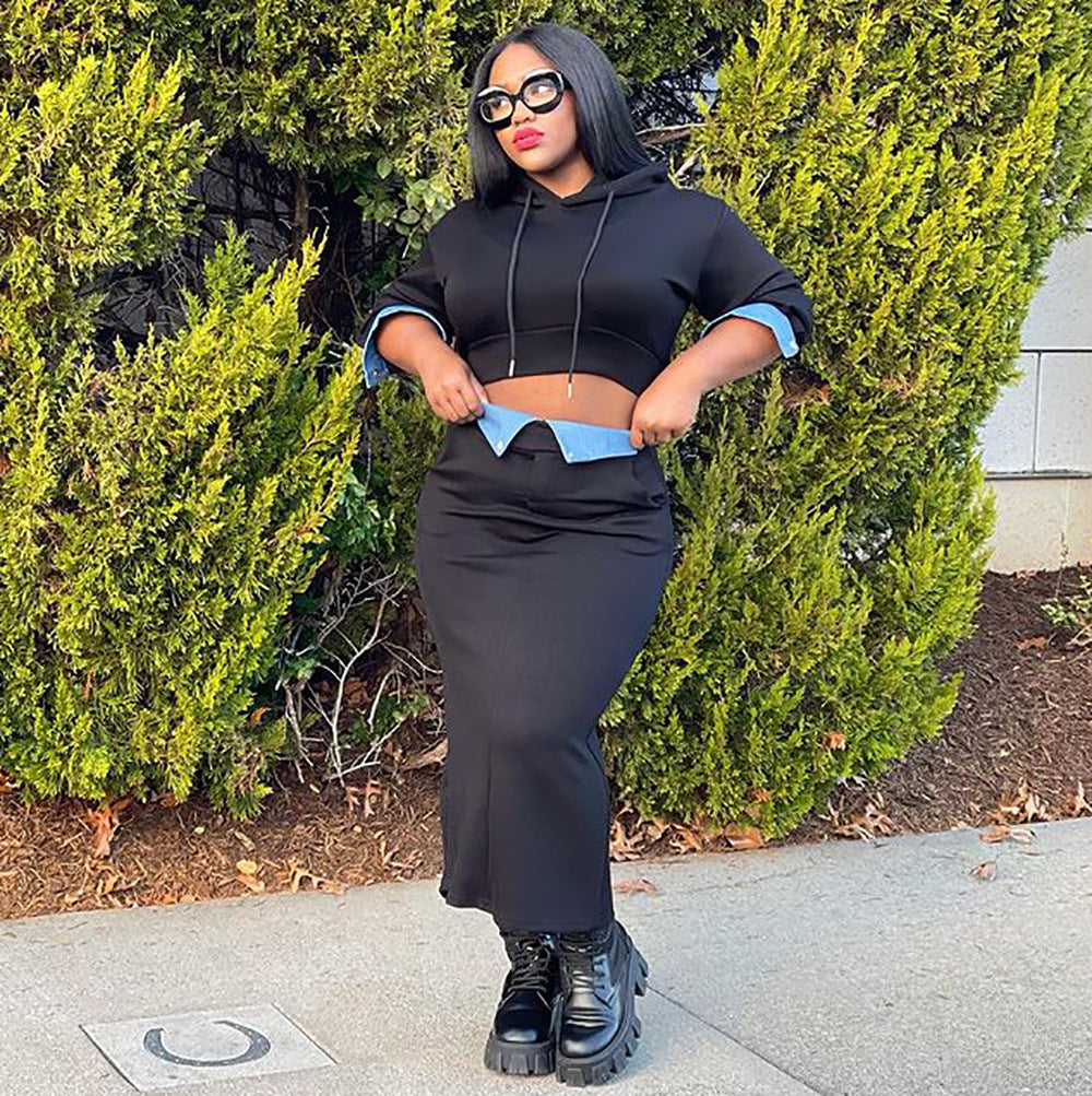 Conjunto de dos piezas formado por sudadera y falda dividida, manga larga, costura vaquera, informal, para mujer, otoño e invierno