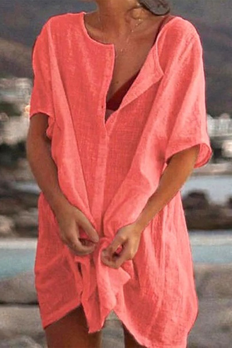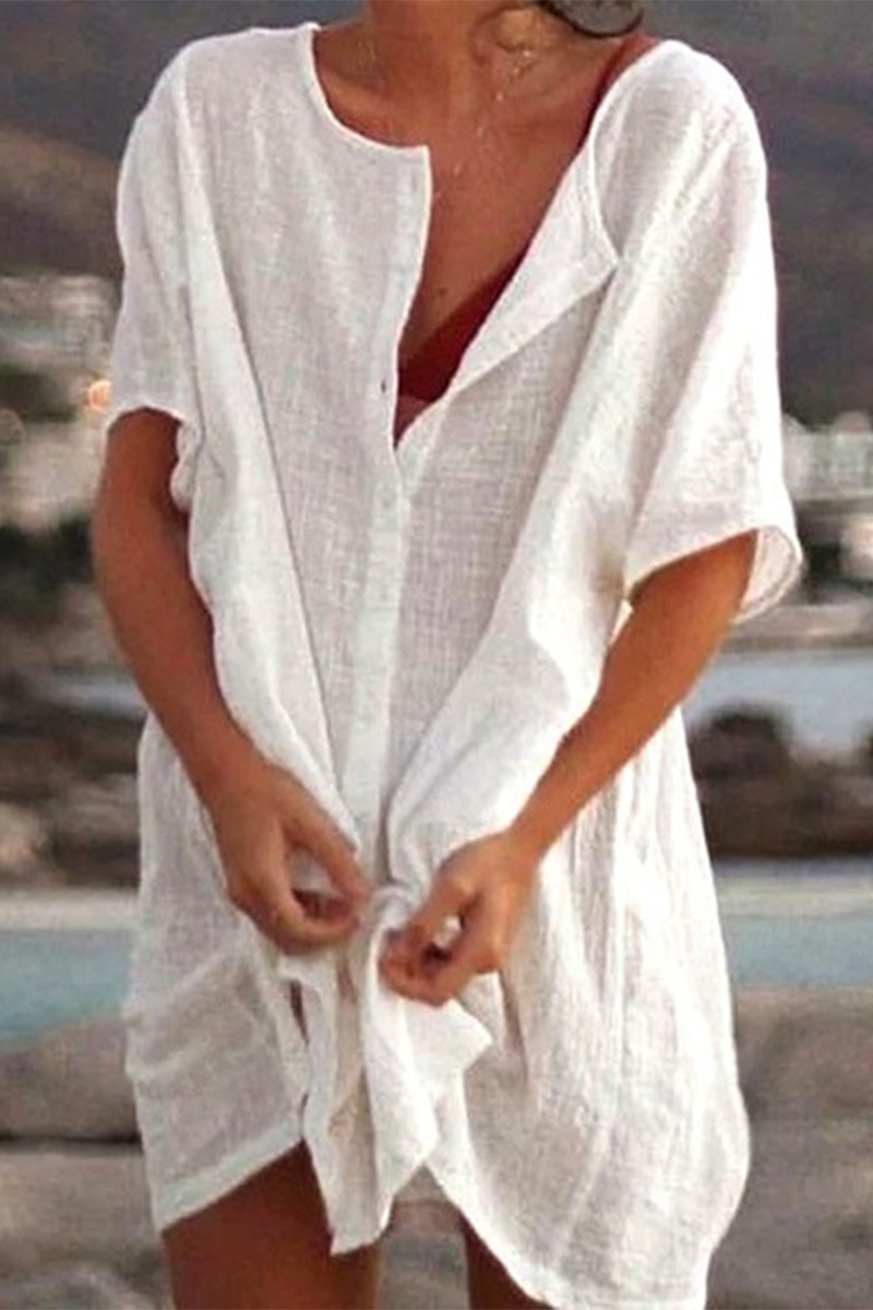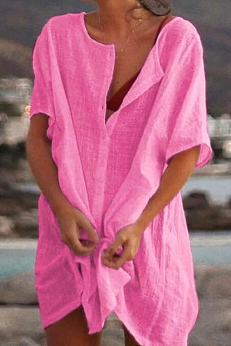 Casual Buttons O Neck Short Sleeve Short Sleeve Dress(7 Colors)