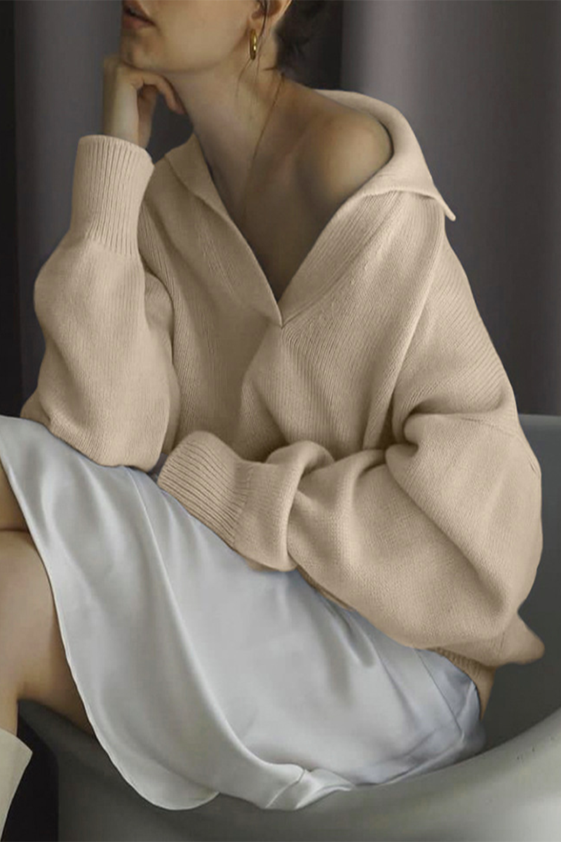 Casual Daily Solid Color Patchwork Knit POLO collar Sweaters