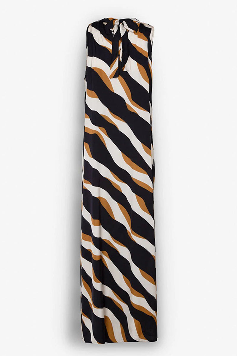 Casual Daily Striped Print Lace Up Contrast Halter One Step Skirt Dresses