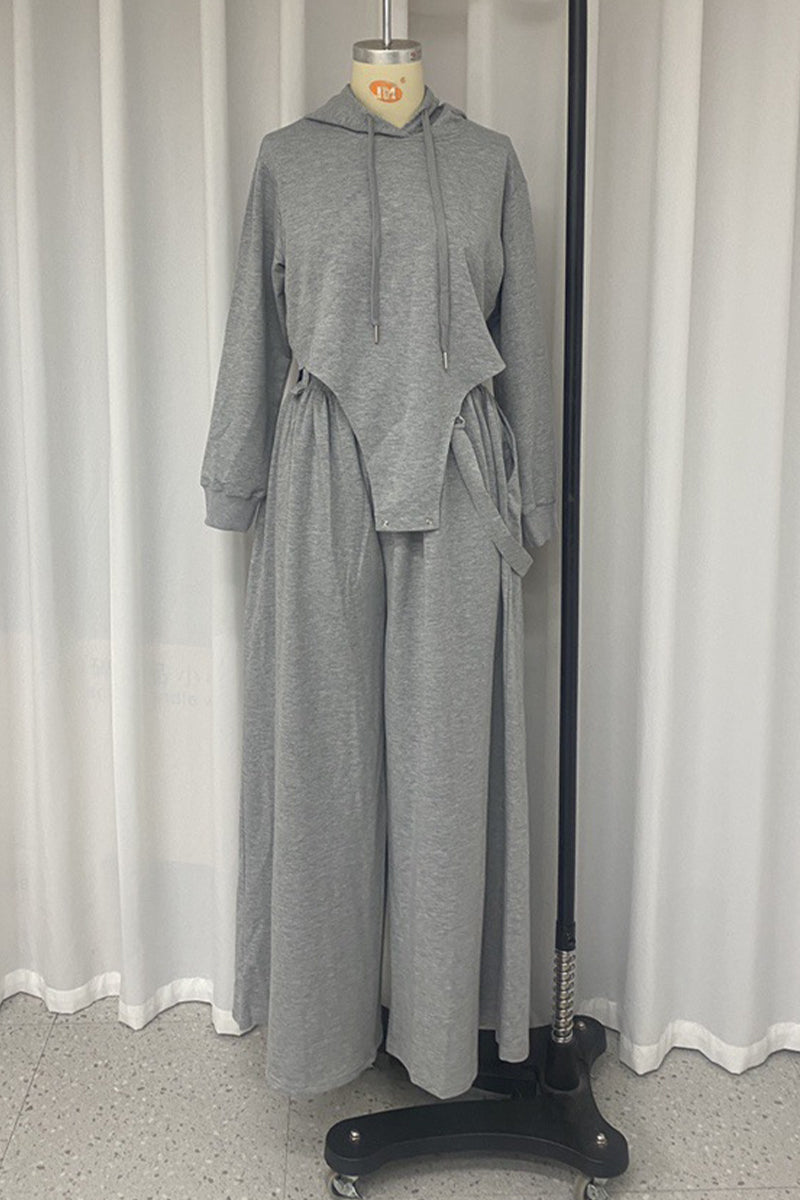 Conjunto informal de dos piezas con capucha, manga larga y bolsillo con cordón ajustable