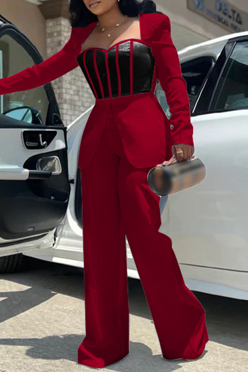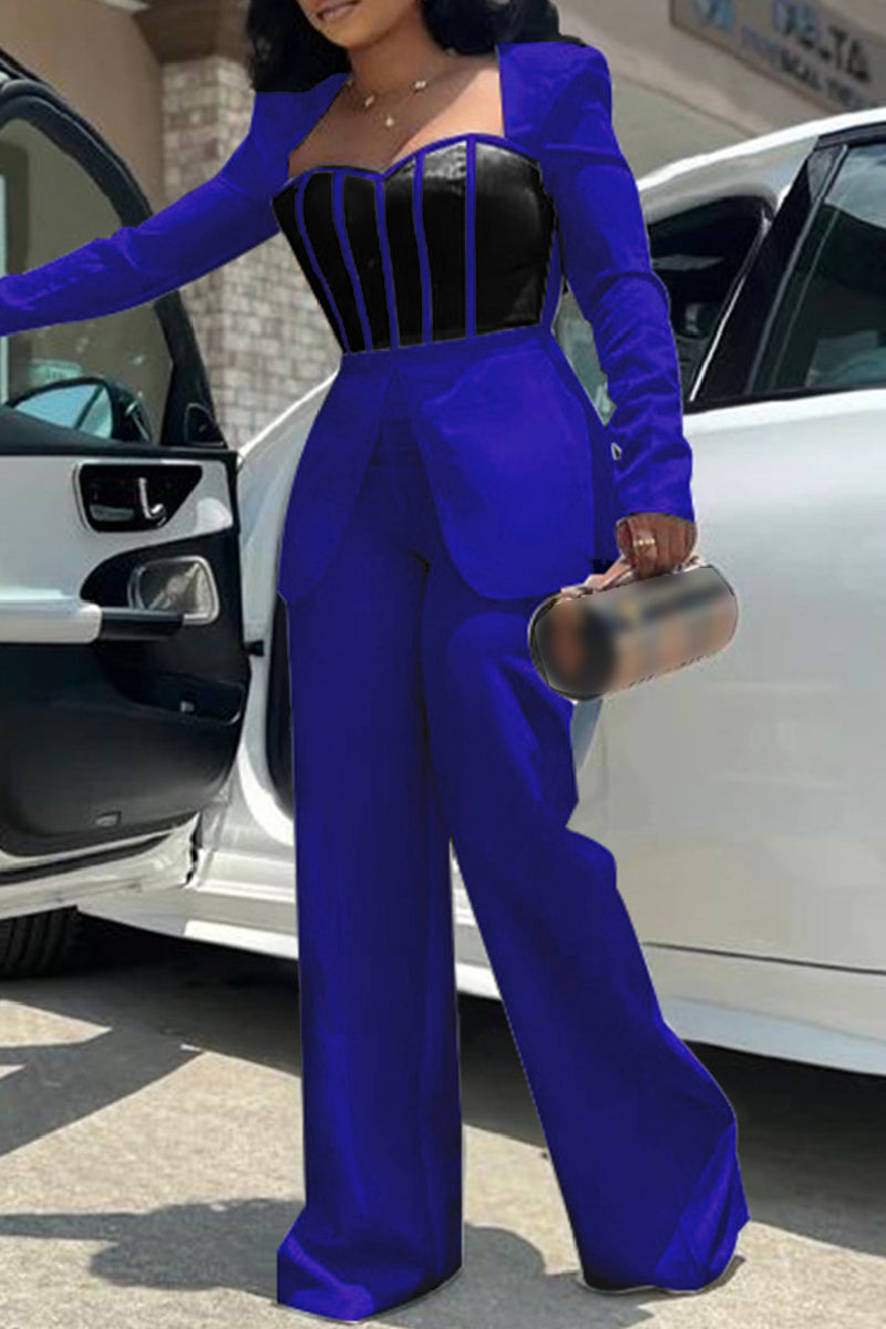 Casual Patchwork Contrast Square Collar Regular Jumpsuits(4 Colors)