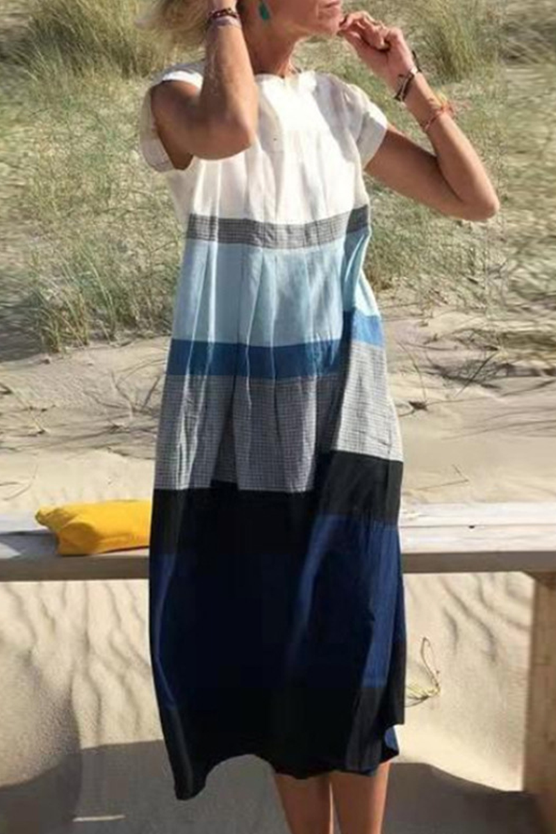 Vestidos casuales de cuello redondo con pliegues y contraste de patchwork