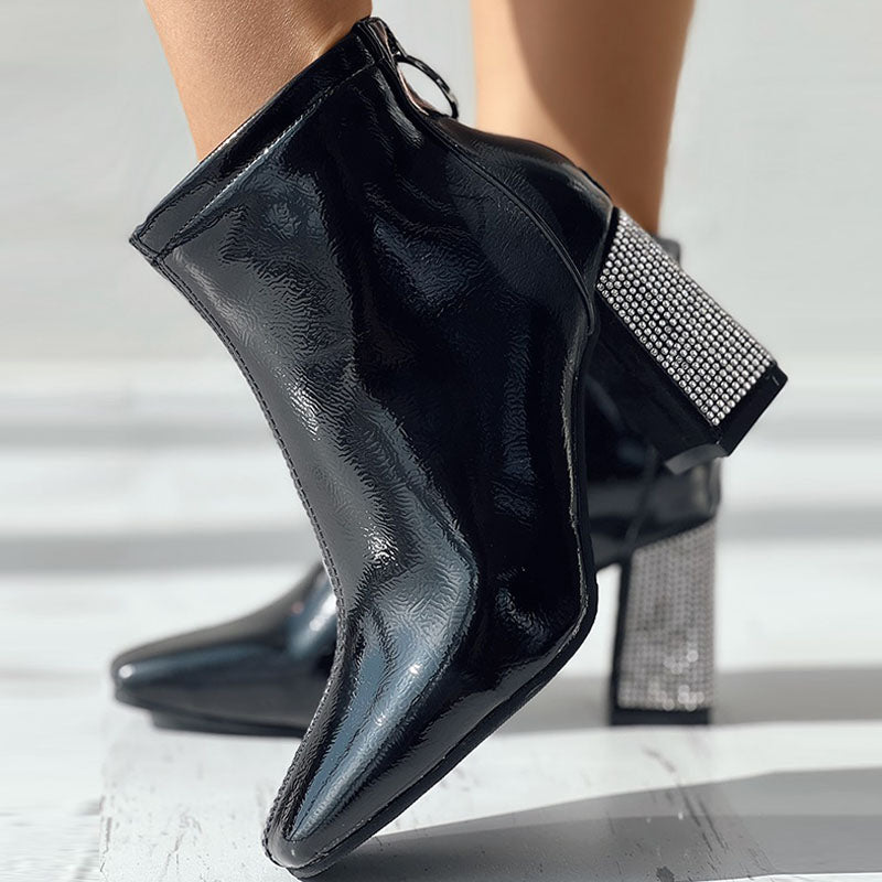 Zapatos casuales de patchwork con pedrería y puntera puntiaguda (altura del tacón: 7 cm)