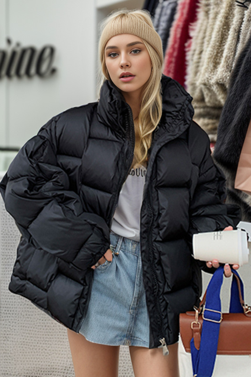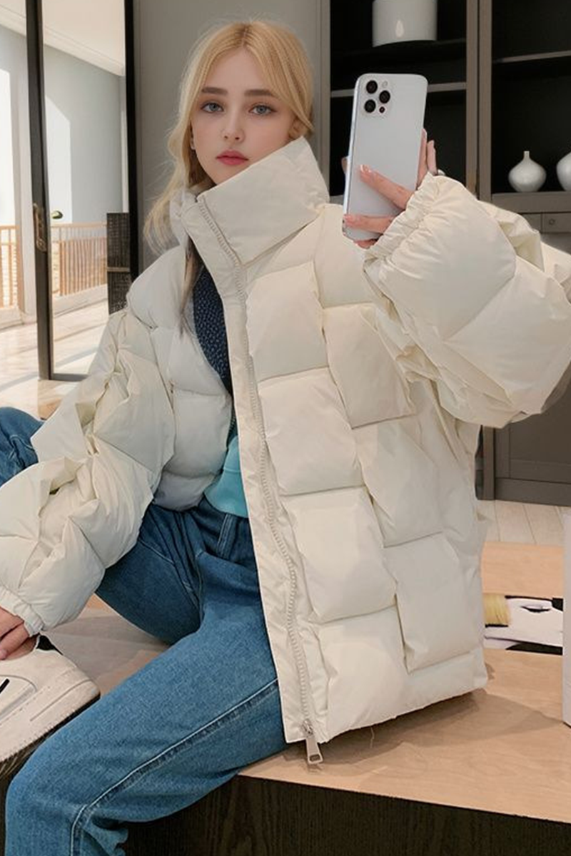 Casual Plaid Zipper Down cotton Mandarin Collar Outerwear(5 Colors)