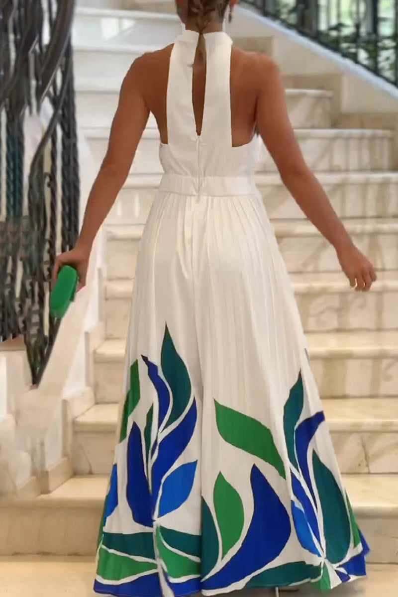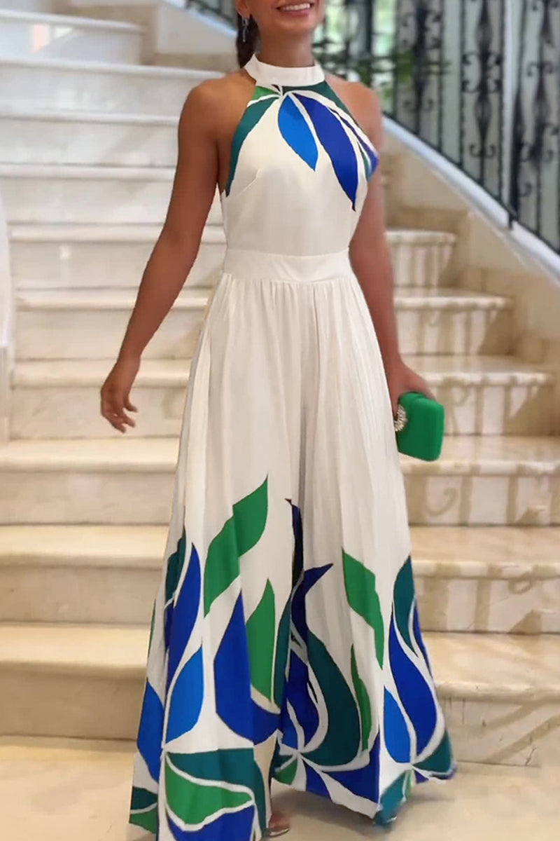 Casual Print Backless Half A Turtleneck Regular Jumpsuits