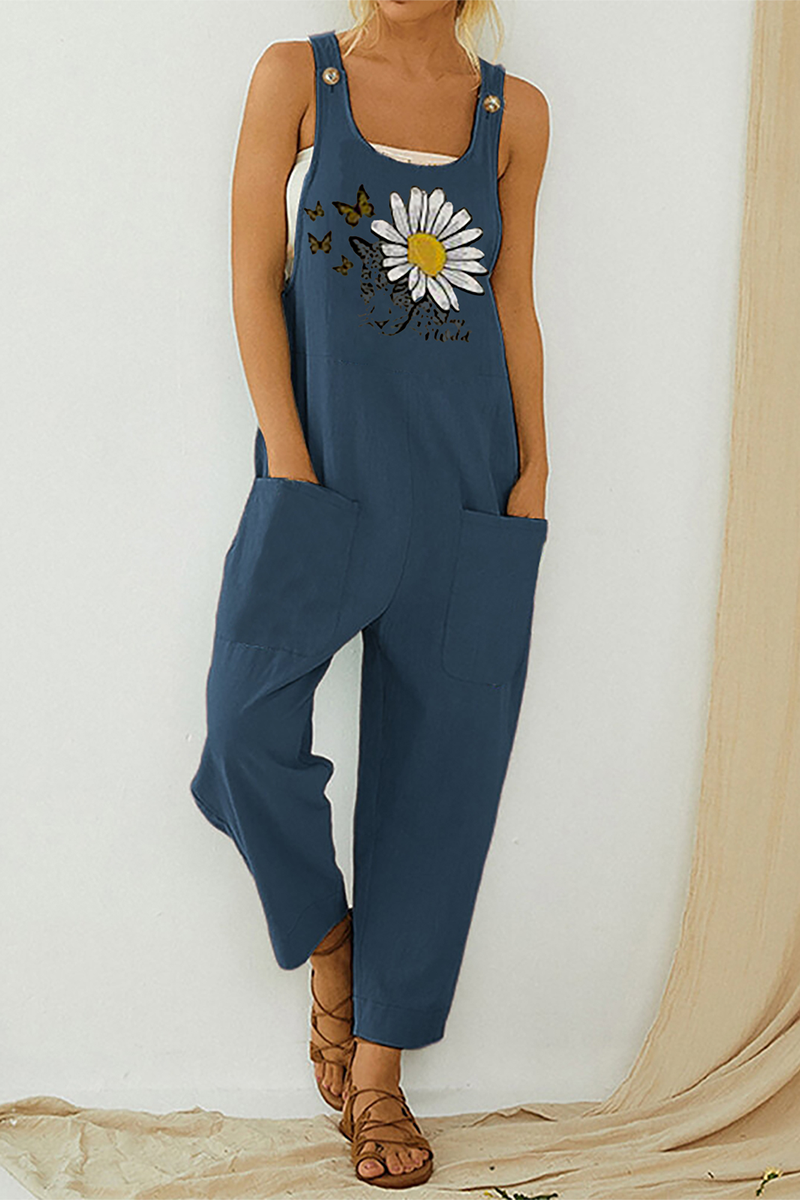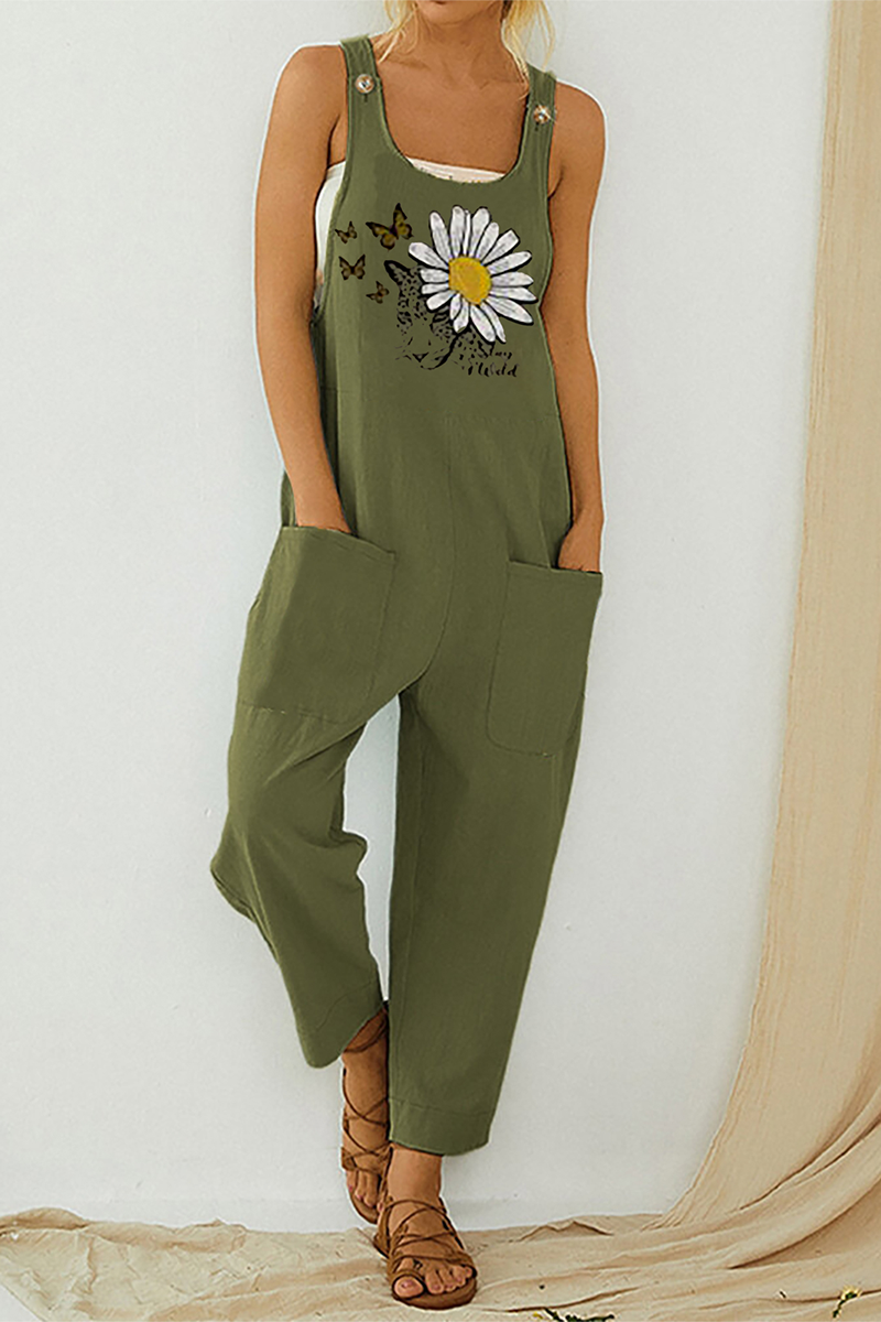 Mono recto informal con cuello en U, botones y bolsillos con estampado (3 colores)