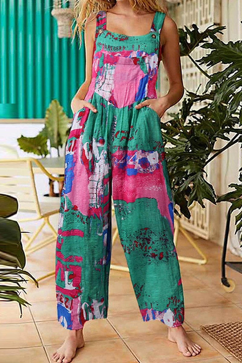 Monos rectos con cuello cuadrado y bolsillo dividido con estampado informal