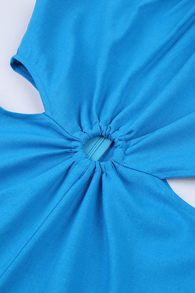 Casual Simplicity Solid Hollowed Out O Neck Loose Rompers