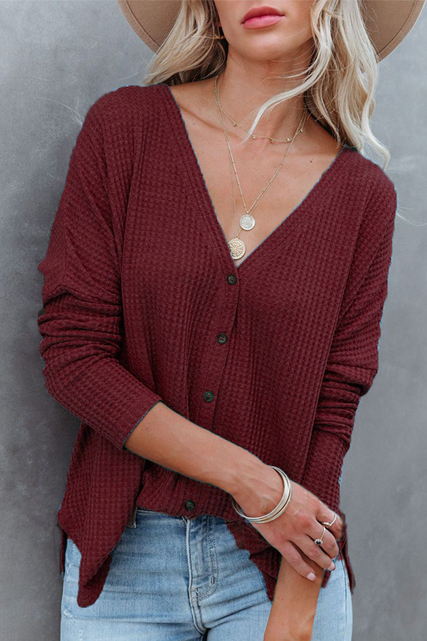 Tops casuales con cuello en V y hebilla sólida