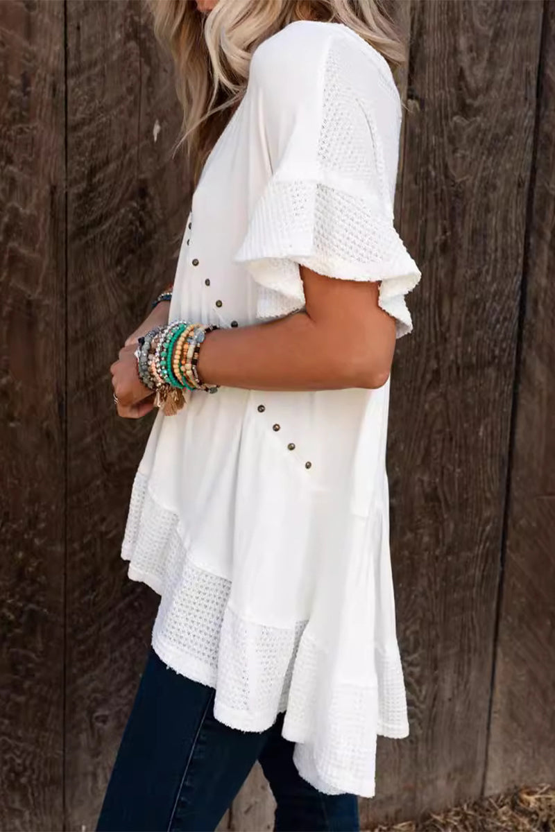 Camisetas casuales de cuello en V con cuentas de color sólido