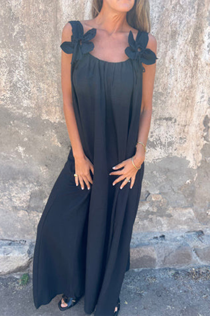 Casual Solid Color Flower Shape U Neck Sling Dresses