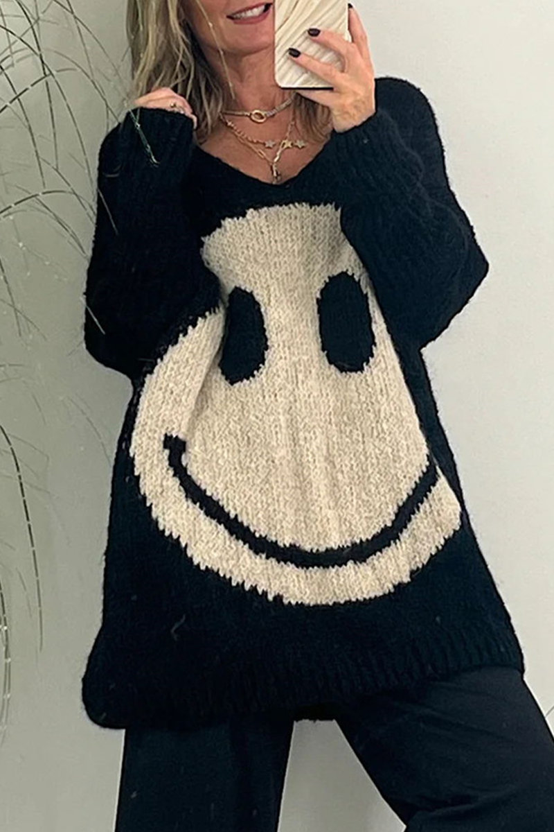 Casual Solid Contrast Weave V Neck Sweaters(7 Colors)