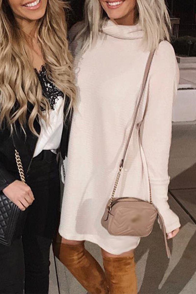 Vestidos casuales lisos de cuello alto con parches