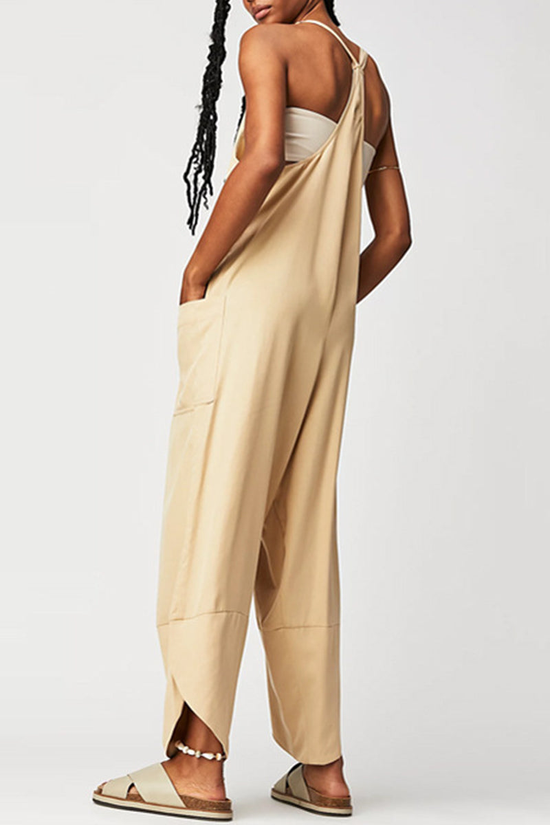 Monos casuales holgados con cuello en V y bolsillos sólidos