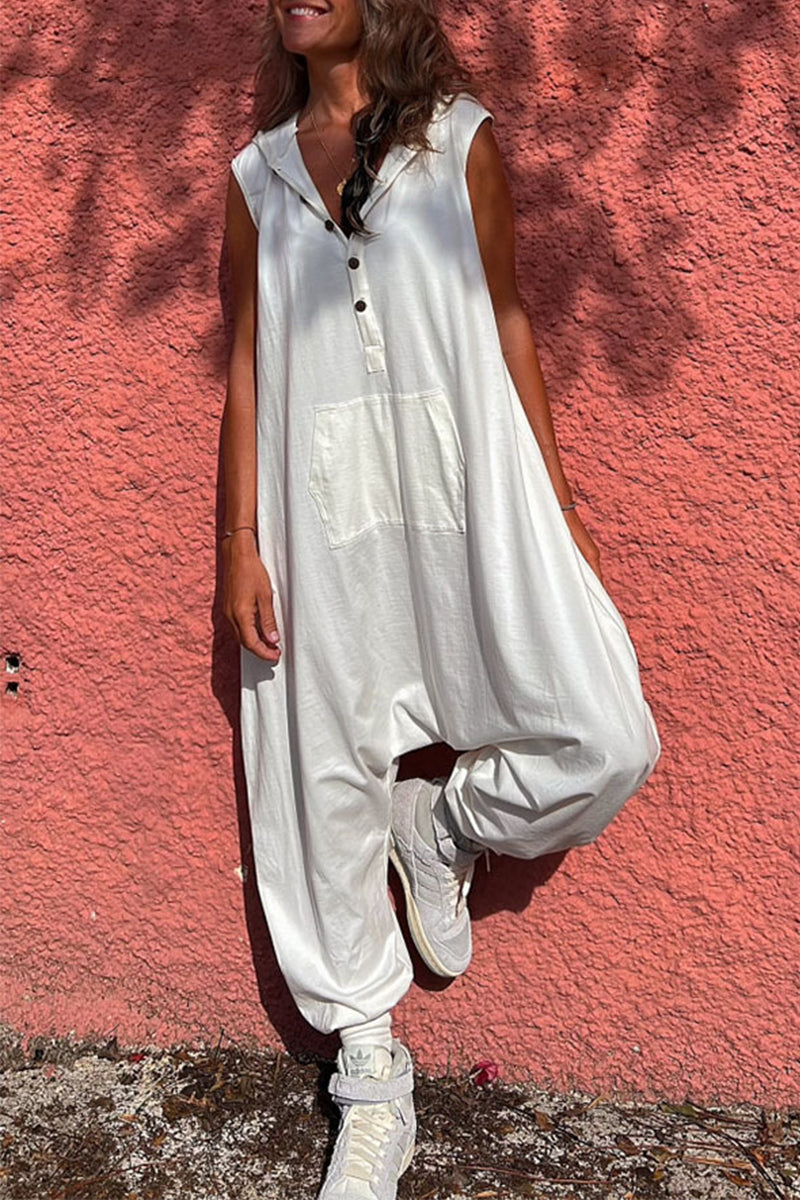 Casual Sportswear Solid Pocket Hooded Collar Loose Jumpsuits(3 Colors)