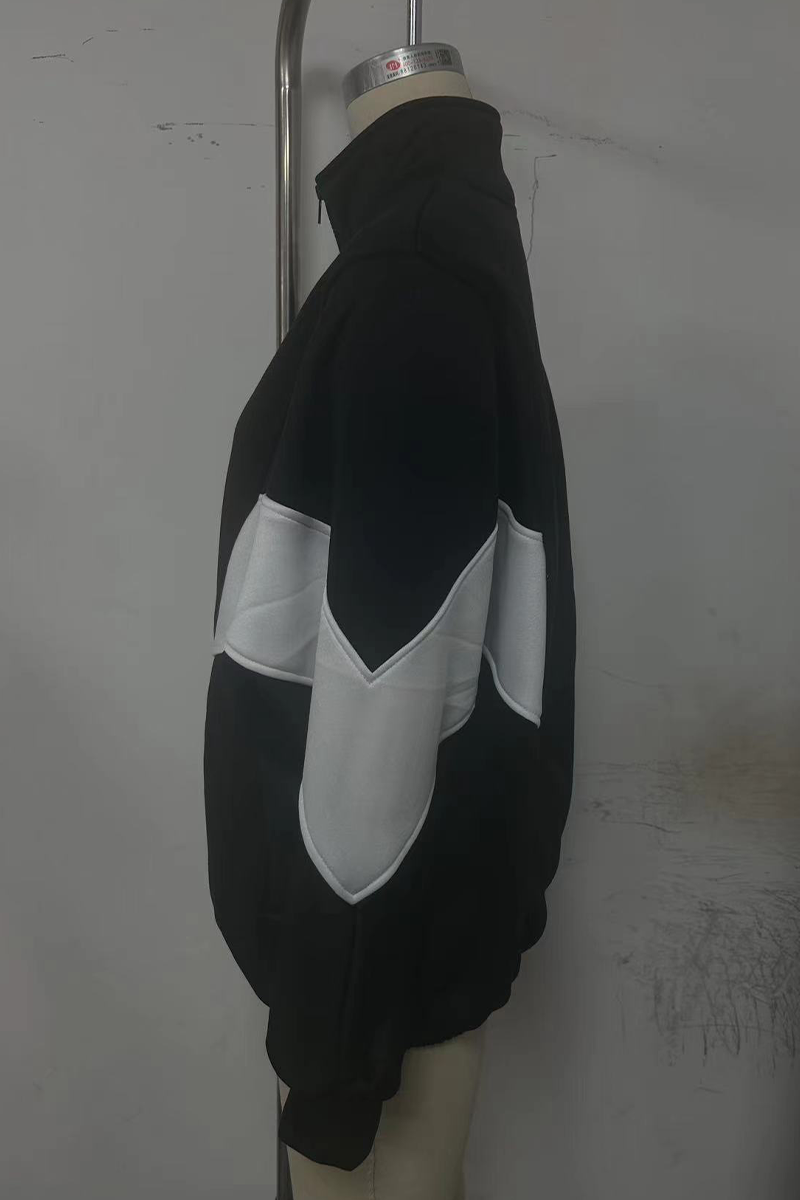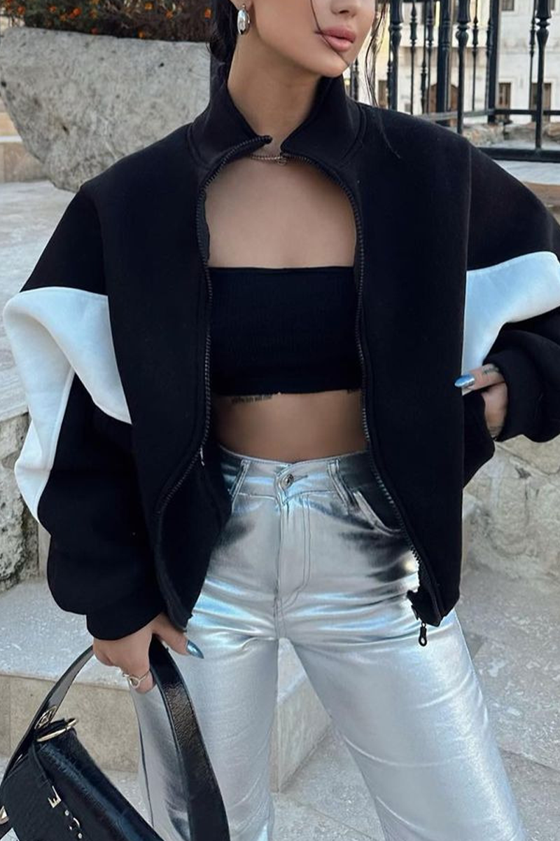 Casual Street Colorblock Patchwork Zipper Contrast Mandarin Collar Outerwear(4 Colors)
