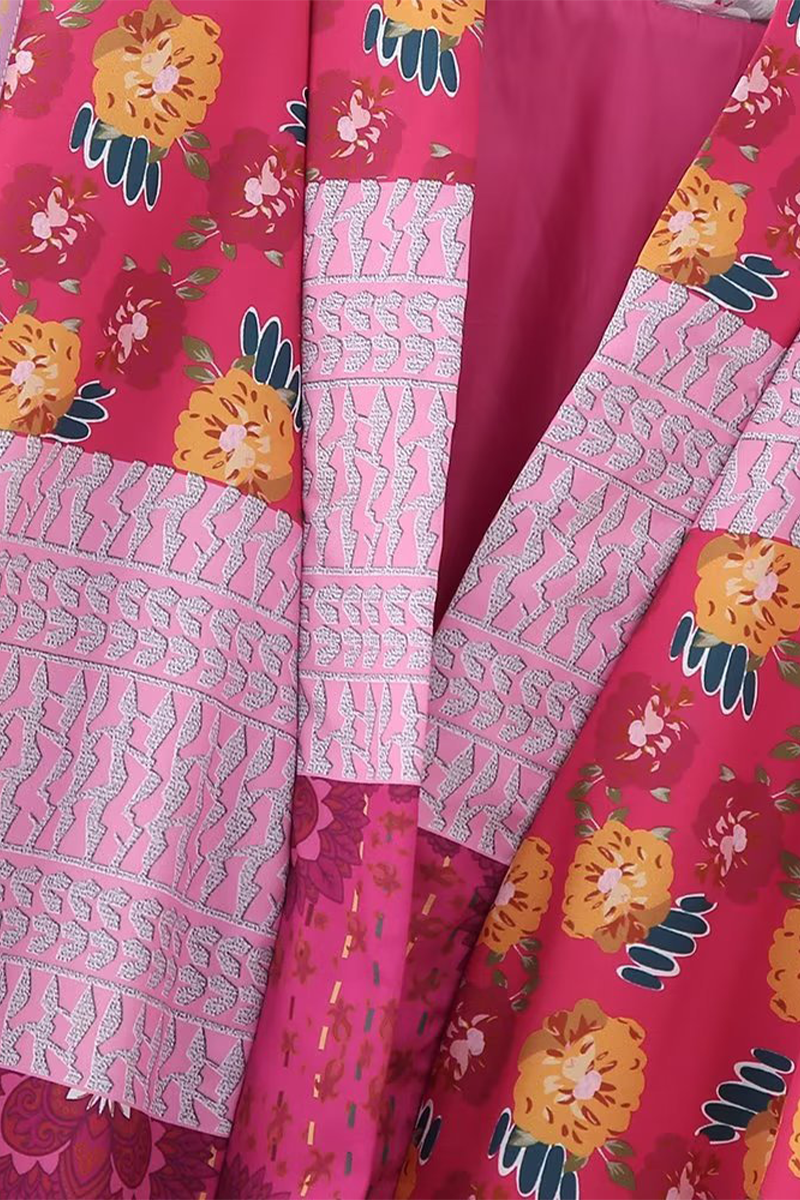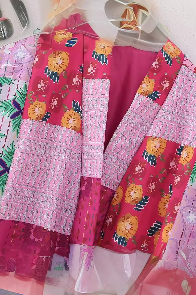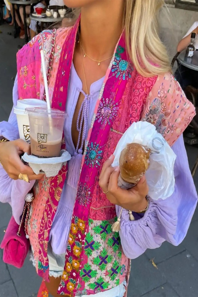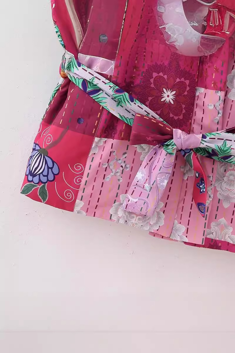 Casual Street Floral Print Lace Up Patchwork Contrast V Neck Tops