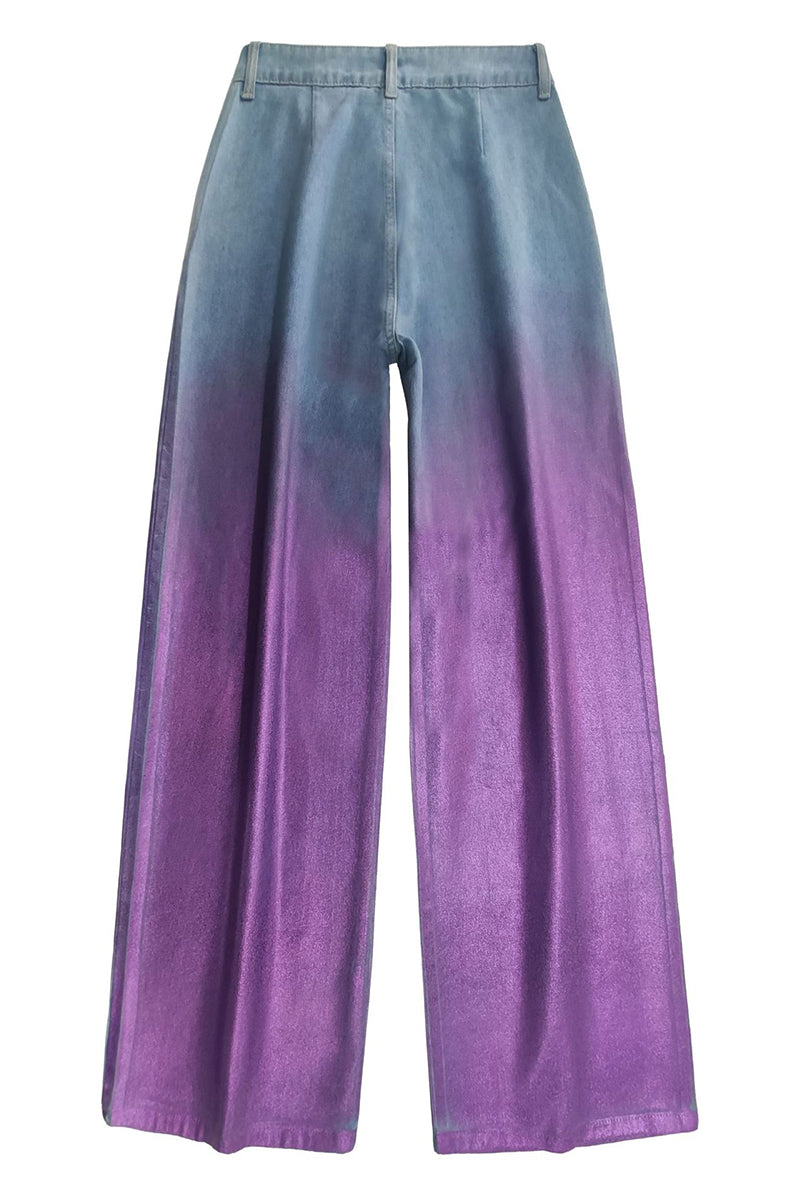 Vaqueros holgados de cintura alta con bolsillos, lentejuelas y estampado degradado de estilo informal de calle