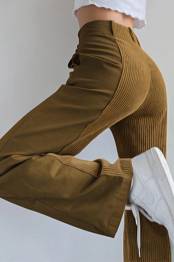 Pantalones casuales de patchwork de cintura alta con contraste (6 colores)