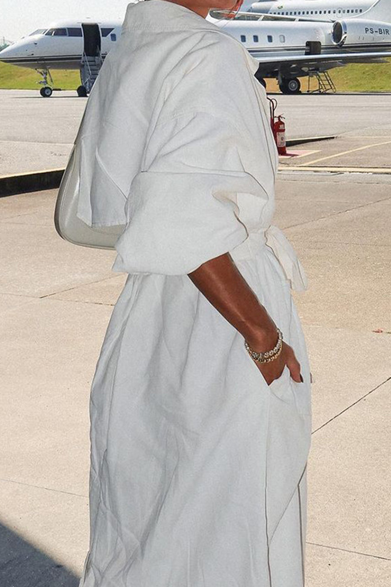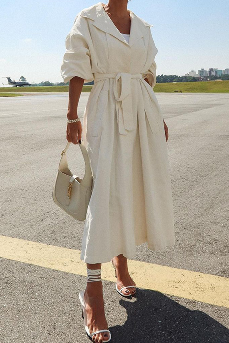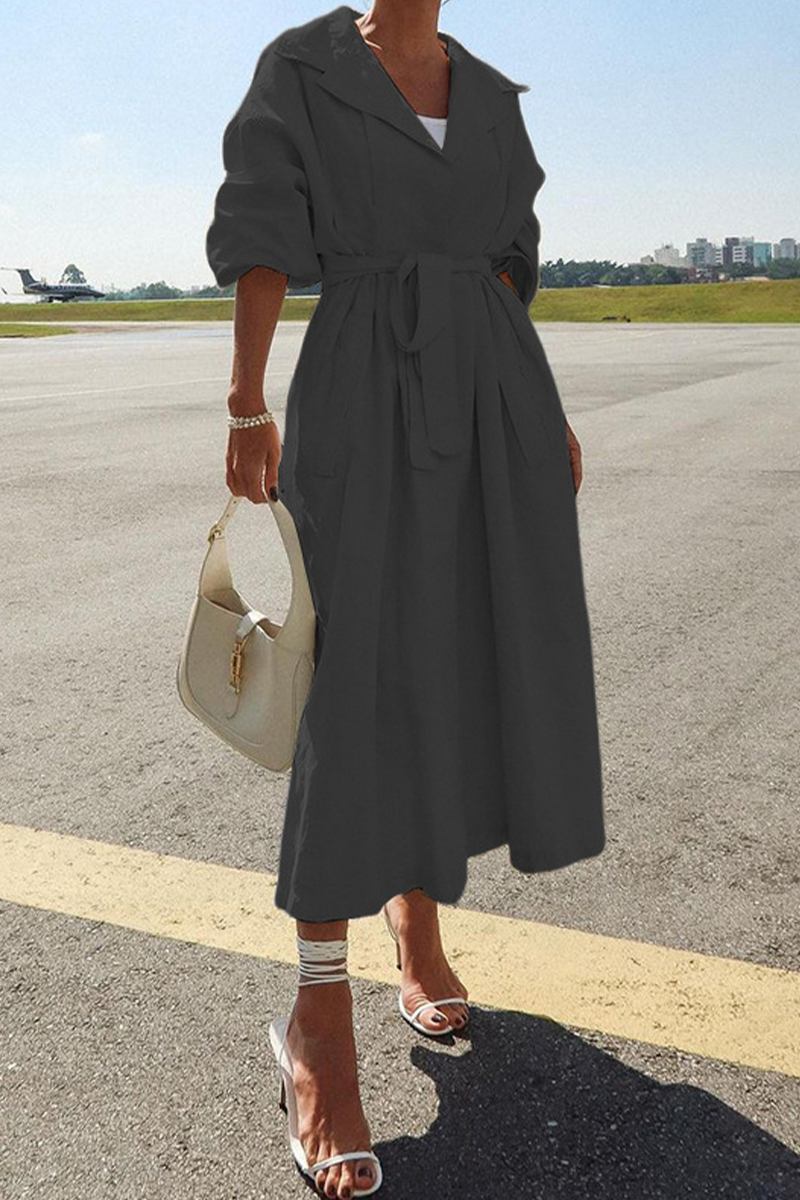 Casual Street Pocket Lace Up Turn-back Collar Outerwear