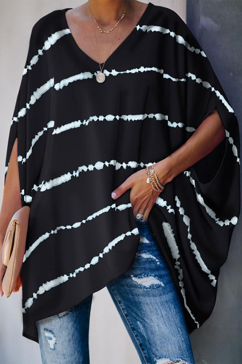 Casual Street Print Contrast V Neck T-Shirts(3 Colors)