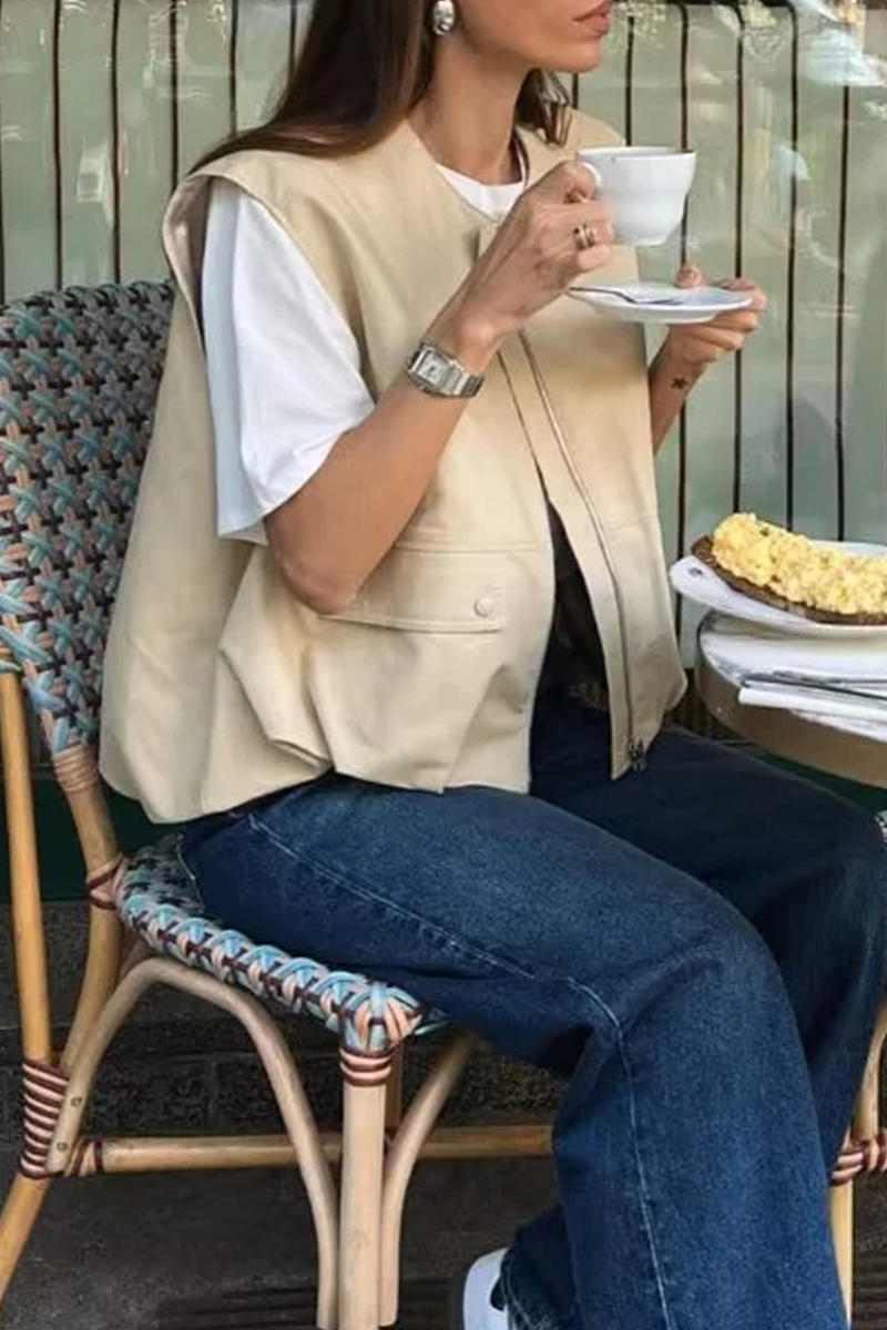 Casual Street Solid Color Pocket Zipper O Neck Waistcoats