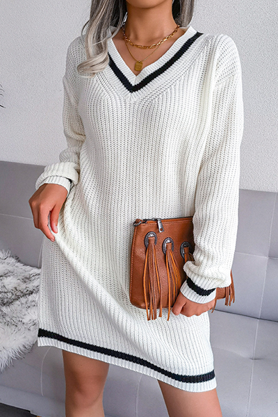 Suéter informal de rayas con abertura en la costura y escote en V en contraste (sin cinturón)
