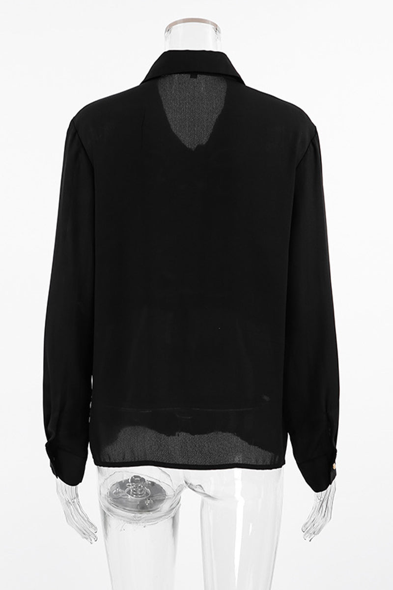 Elegant Buttons Pleated Turndown Collar Blouses