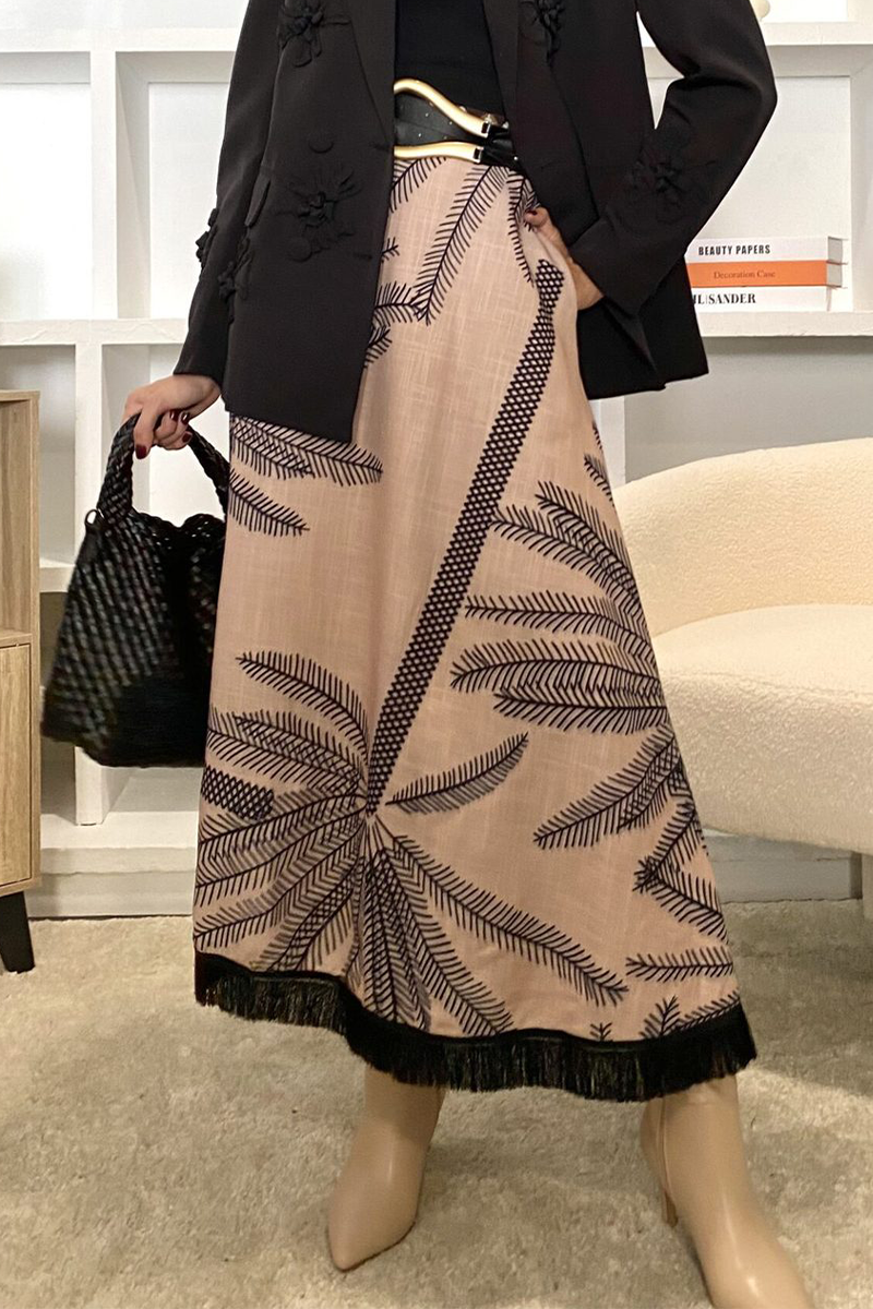 Elegant Floral Print Fringed Trim Pocket Contrast Loose High Waist Type A Full Print Bottoms(No waist belt)