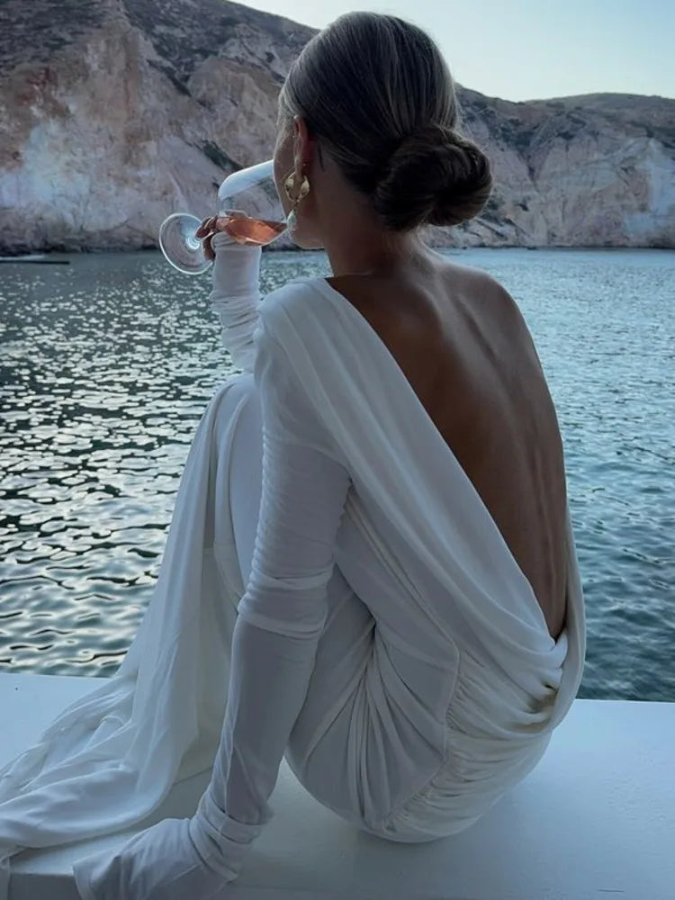 Elegant Long Sleeve Bodycon Party Club Evening Dress Women Sexy Backless SlimVestido Fashion Autumn/Winter New 2025