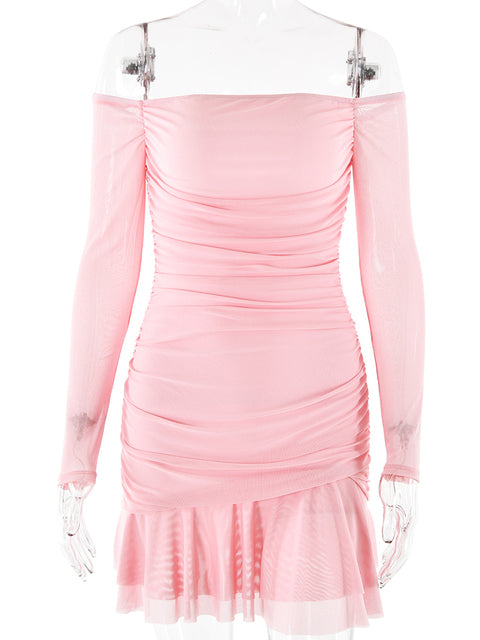 Elegant One Shoulder Double Layer High Elasticity Tight Dress For Women Bodycon Fall Female Party Evening Dress