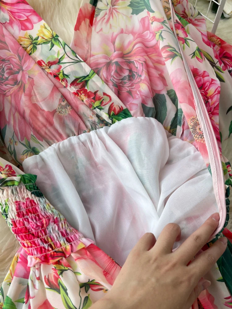 Elegant Party Dress Women Chiffon Printed Floral Long Dresses Ladies Short Sleeve Sexy V-neck Beach Maxi Dress Vestidos