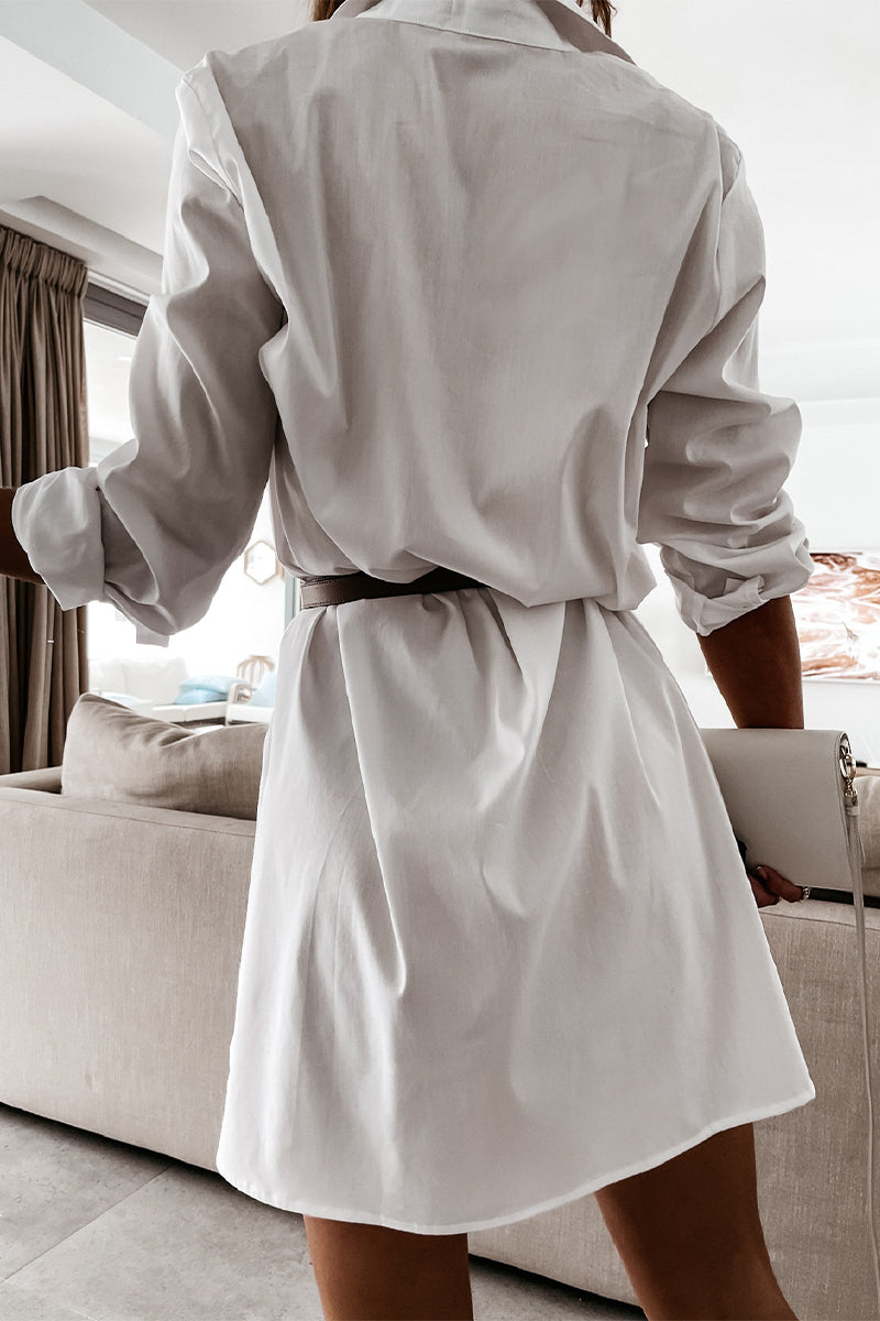 Vestidos de falda de un solo paso con cuello POLO y parches sólidos casuales de moda