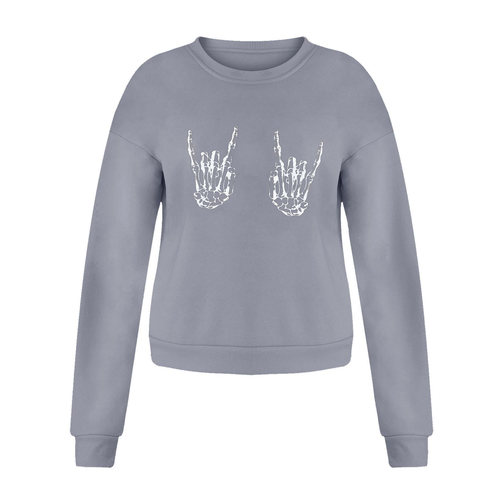 Sudadera holgada informal de moda con estampado de mano de esqueleto para mujer