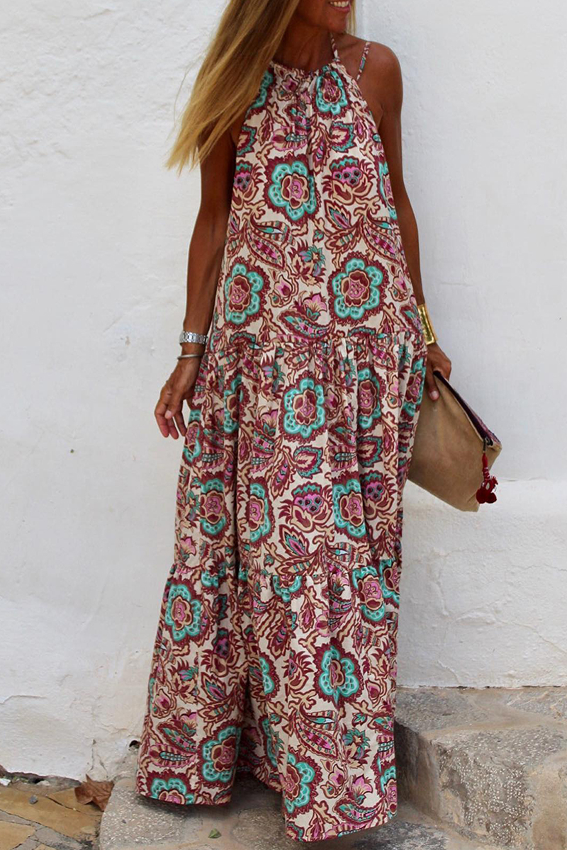 Vestidos rectos con cuello halter y abertura en la articulación con estampado de moda