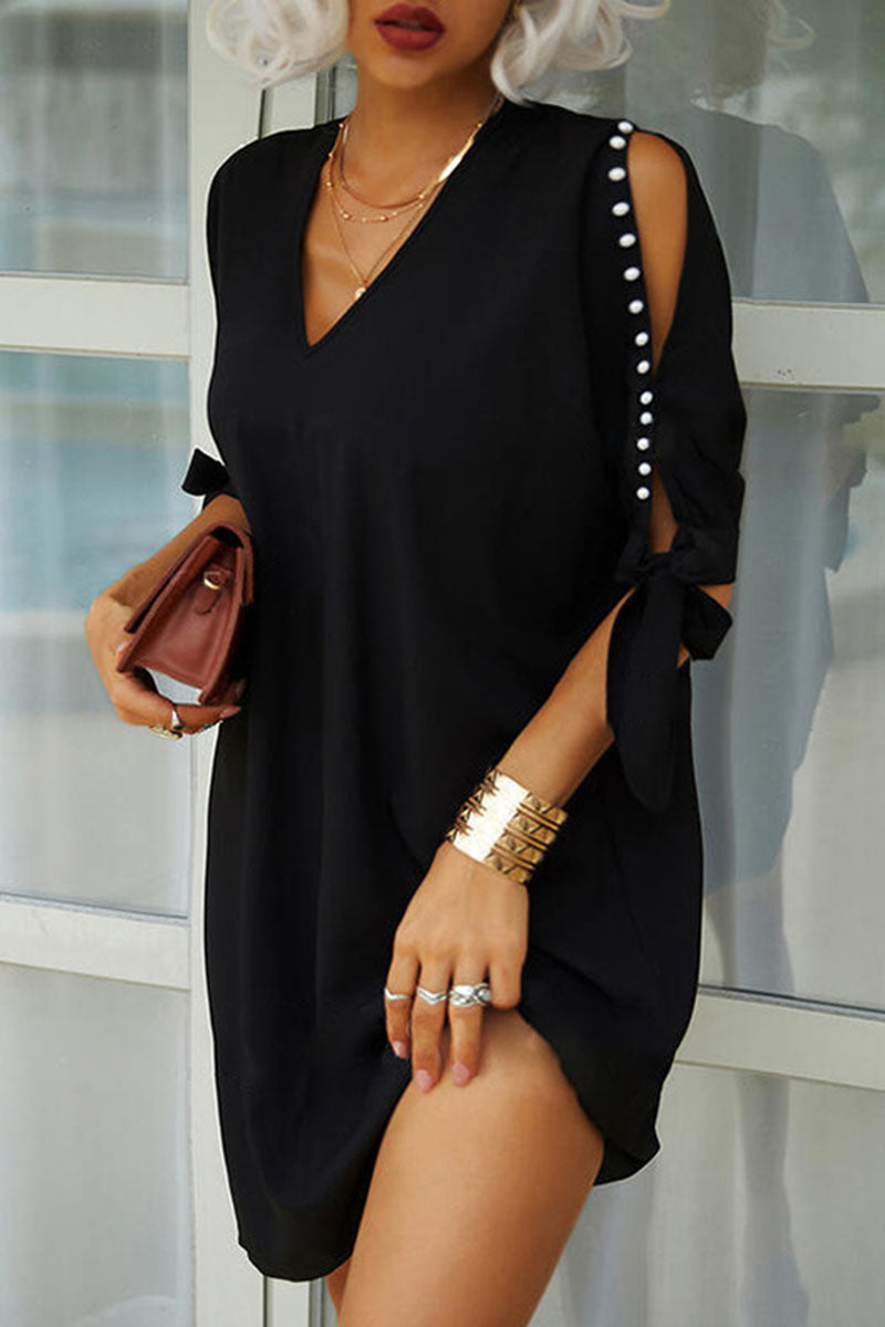 Vestidos de moda con cuello en V, línea A y cuentas sólidas