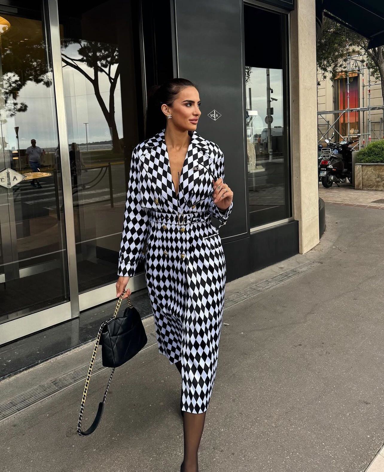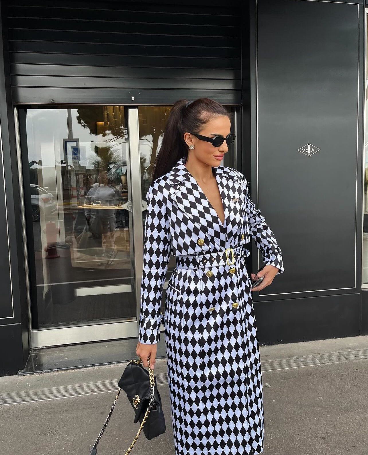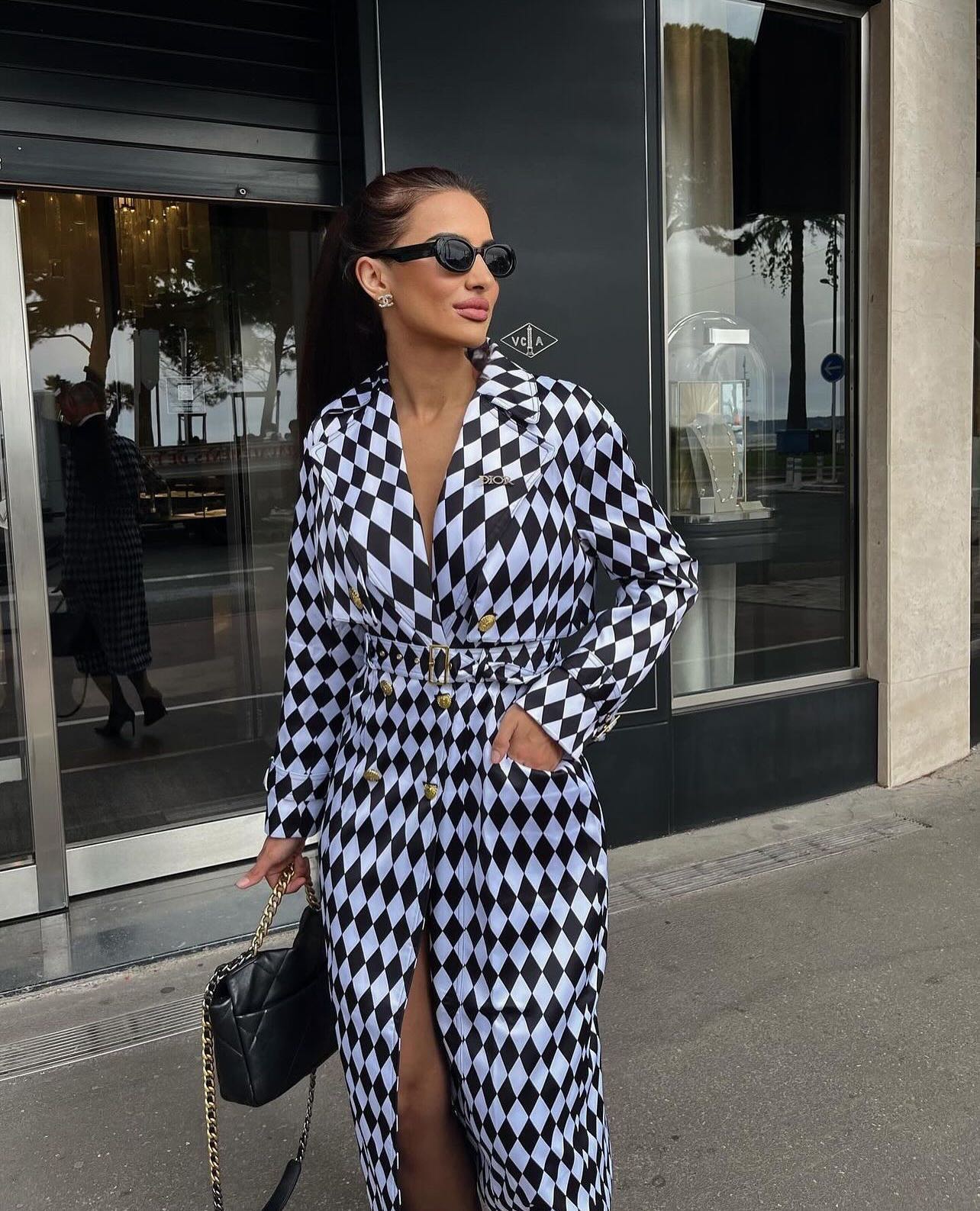 The Jamya Trench is the must-have piece for your fall and winter wardrobe. This designer overcoat features a unique rhombus diamonds print, adding a touch of sophistication to your style. Its long length offers maximum coverage and warmth, making it perfect for the colder seasons. Elevate your fashion game with the newest addition to your closet.