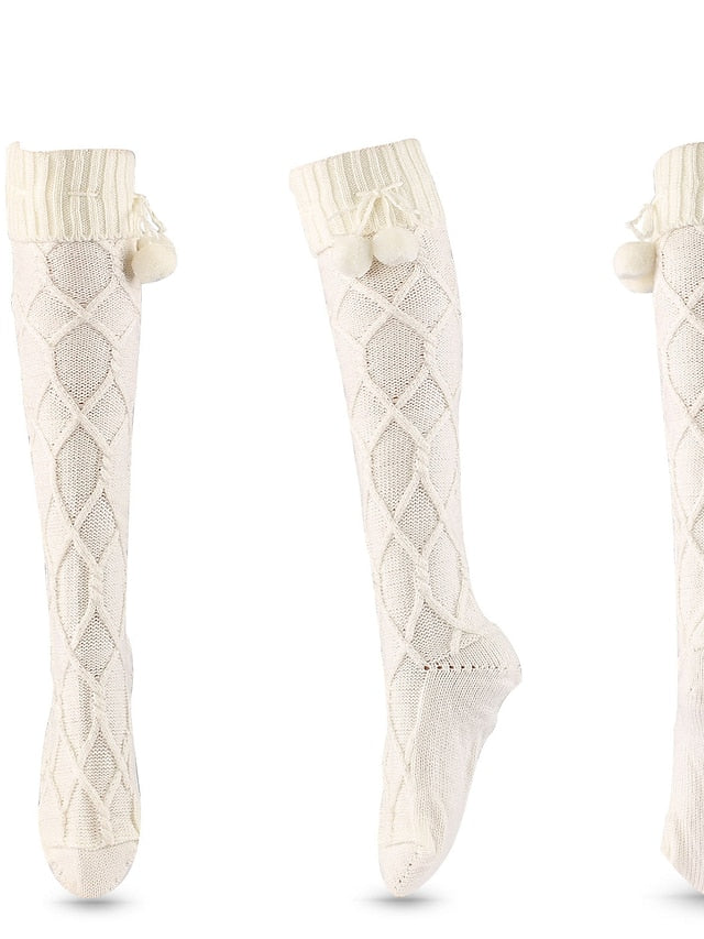 Knee High Socks Home Daily Holiday Solid Color Polyester Spandex Basic Classic Warm Cute 1 Pair for Women