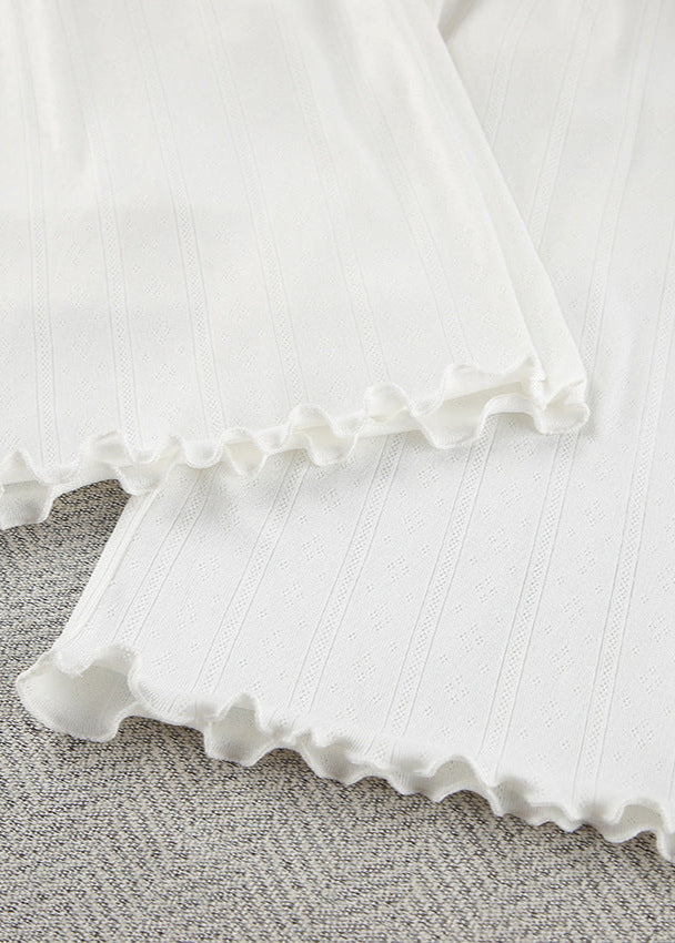 The Knit Lounge Set with Camisole is a cozy and stylish option for relaxing at home. This two-piece set includes a fitted knit camisole and matching wide-leg pants, both designed with delicate patterns for added charm. The stretchy waistband ensures comfort, while the lightweight fabric makes it perfect for lounging or casual indoor moments.