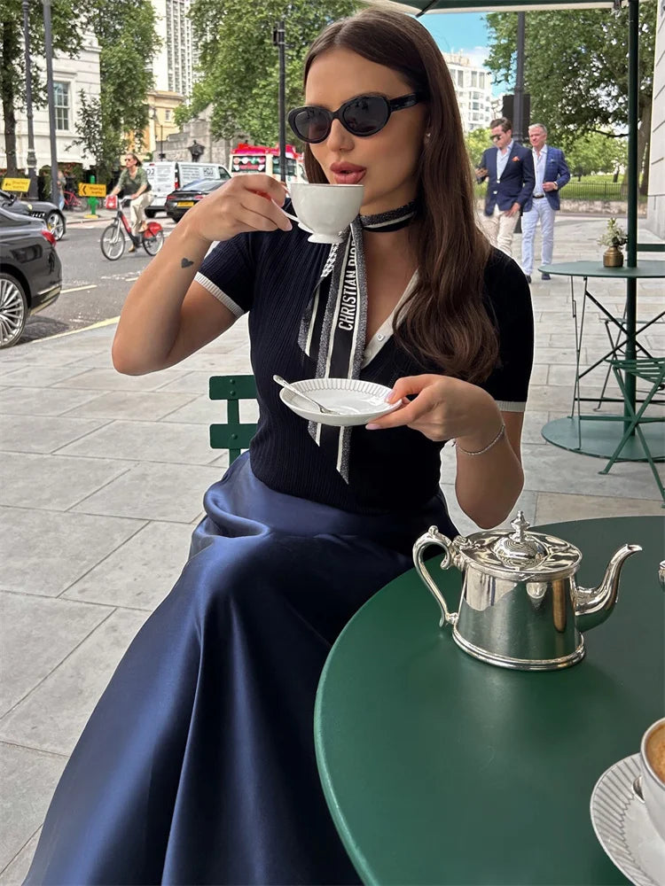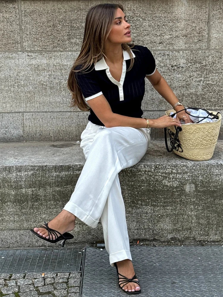Knit Sweater Pullover Female V-Neck Fashion Ribbed Patchwork Short Sleeve Contrast Top Streetwear Women’s Knitwear Top New