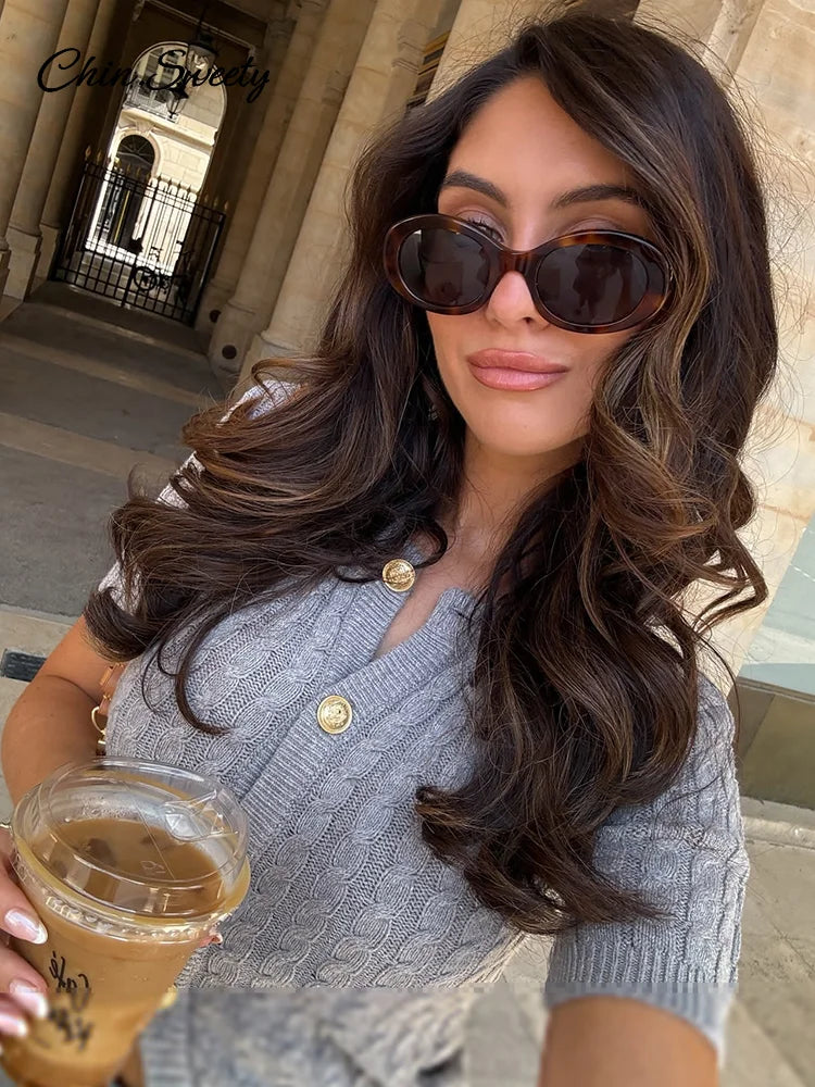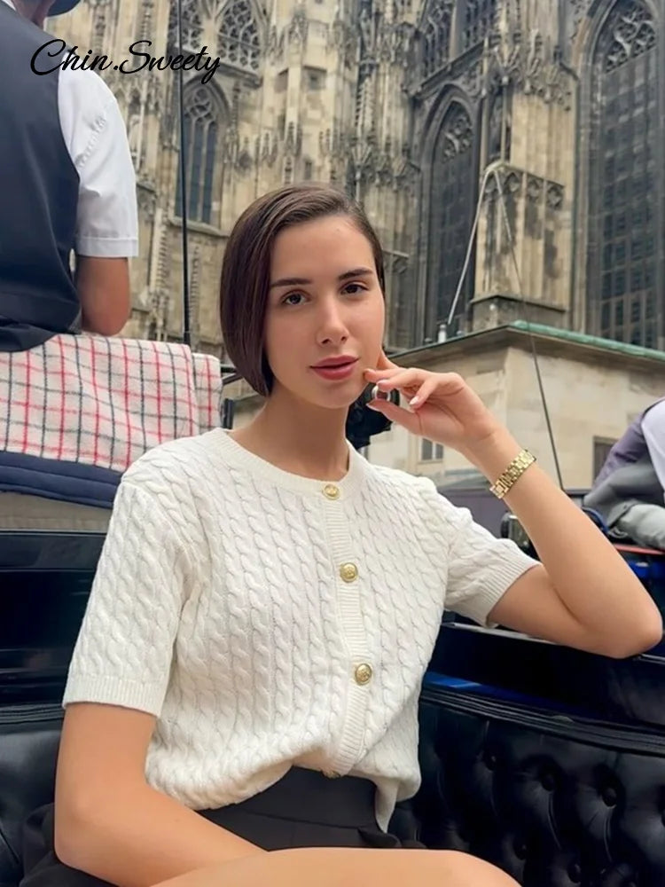 Knitted Single Breasted Cardigans Women Solid O-neck Short Sleeve Ribbed Sweaters Female Fashion New Slim Ladies Casual Top