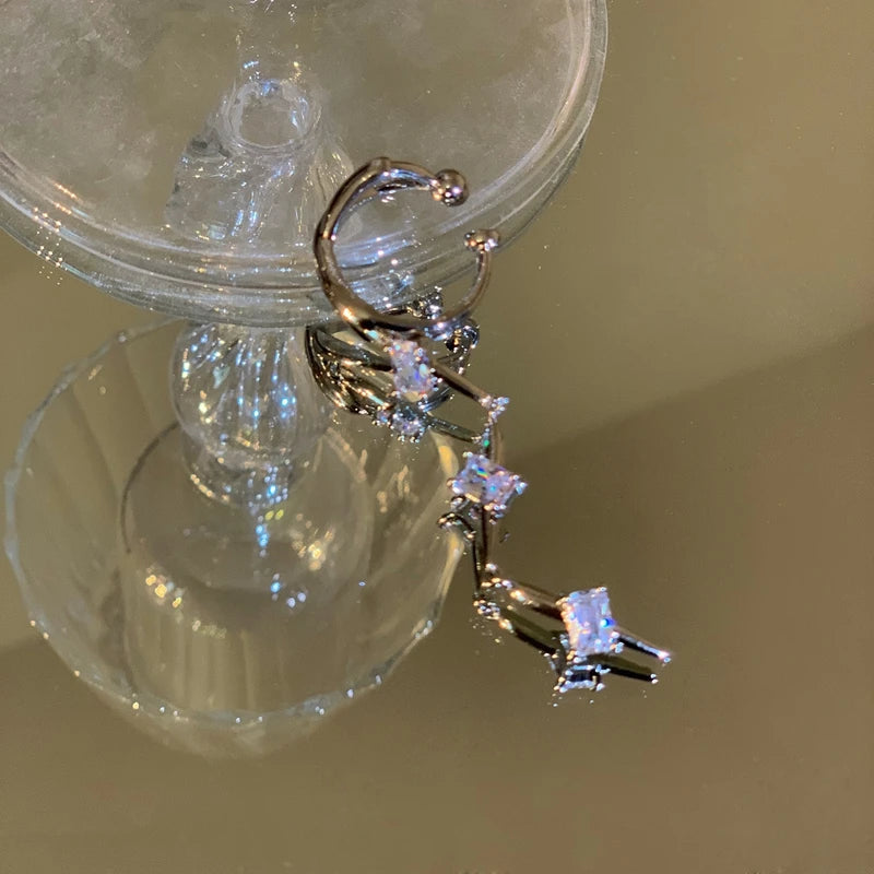 Lizakosht Korean Fashion Star Zircon Long Clip Earrings Women Girls Trendy Silver Color No Piercing Cartilage Jewelry
