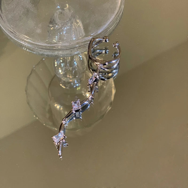 Korean Fashion Zircon Long Clip Earrings for Women Silver Color No Piercing Cartilage Jewelry
