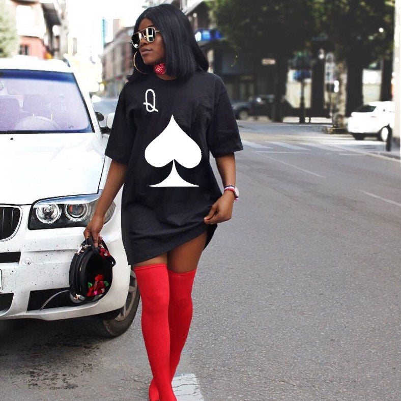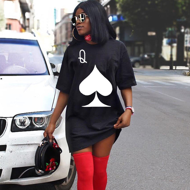 Vestidos casuales con estampado de póker de manga corta y talla grande para mujer, tallas L-5XL